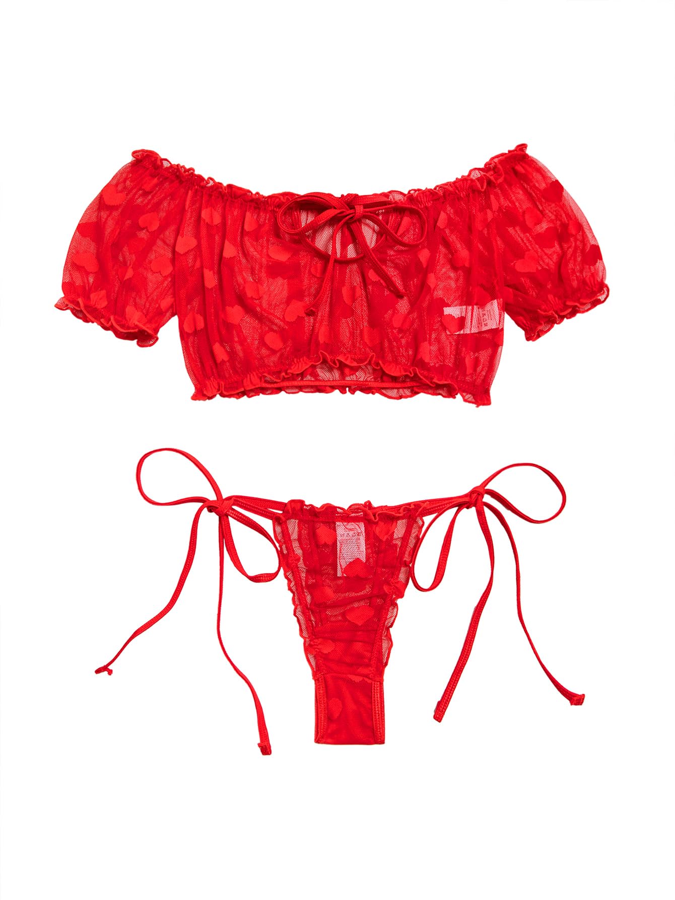 LilosyLilosy Sexy Stretch Ruffle Tie Sheer Mesh Lingerie Set Outfits: Large Love Heart