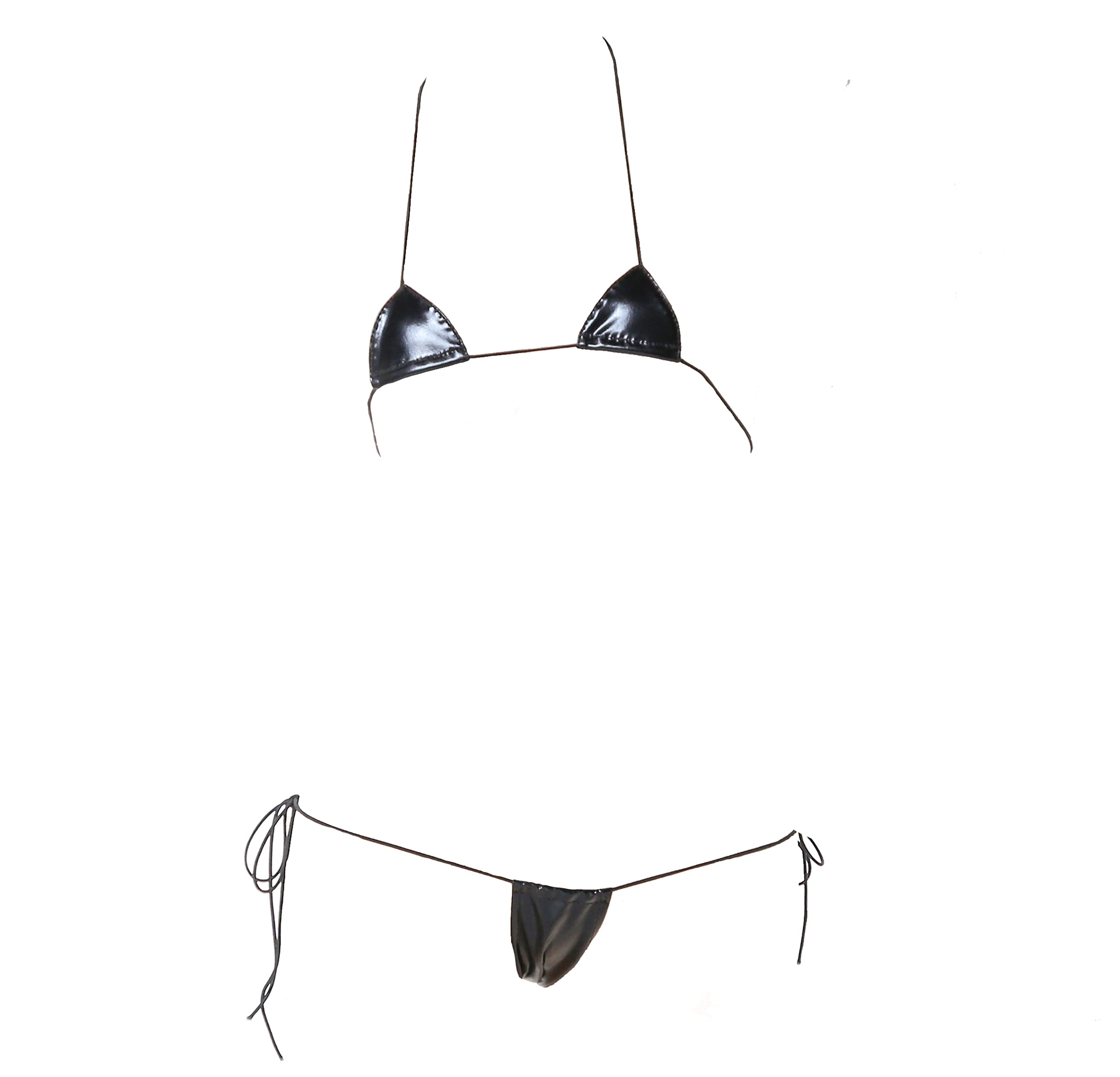 JasmyGirlsJasmyGirls Leather Micro Bikini Extreme Anime Lingerie Sexy Cosplay Outfit Japanese Bra Panty Set Two Piece Thong Swimsuit: Black