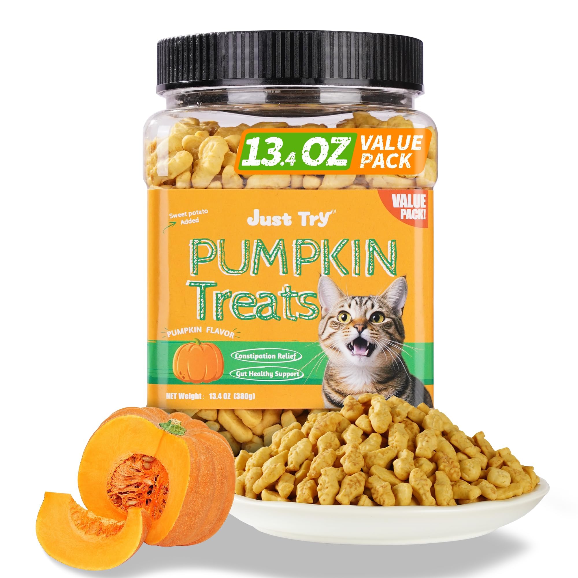 Universal BrandsJust Try 13.4 OZ Cat Treats for Indoor Cats Hairball Control Natural Salmon Healthy Cat Grass Treats Kitten Snacks Training Biscuits Catnip for Cats Dental Care: Salmon & Pumpkin 13.4 Ounce (Pack of 1)