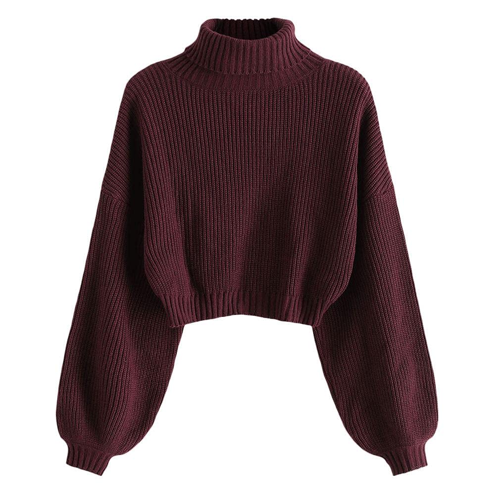 Universal BrandsZAFUL Women's Crew Neck Long Sleeve Pullover Crop Sweater Mock Neck Lantern Sleeve Ribbed Knit Cropped Sweater