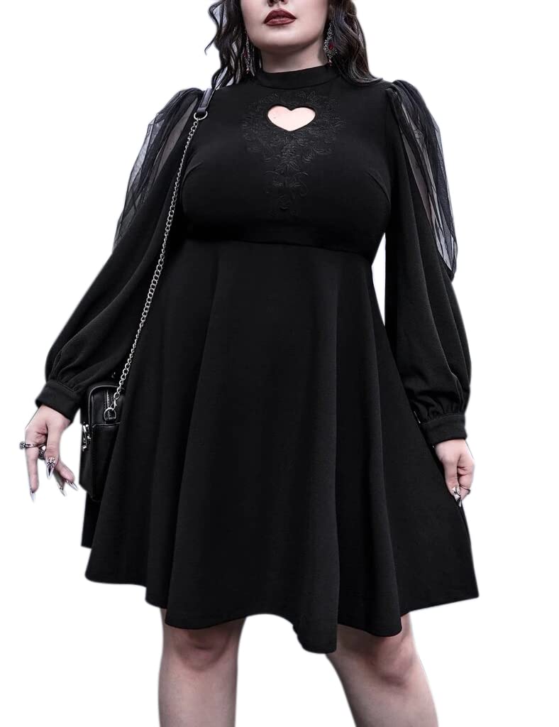 Universal BrandsLANSHULAN Gothic Plus Size Keyhole Neckline Puff Sleeve Gothic Dress: 3X-Large Plus Keyhole Neckline
