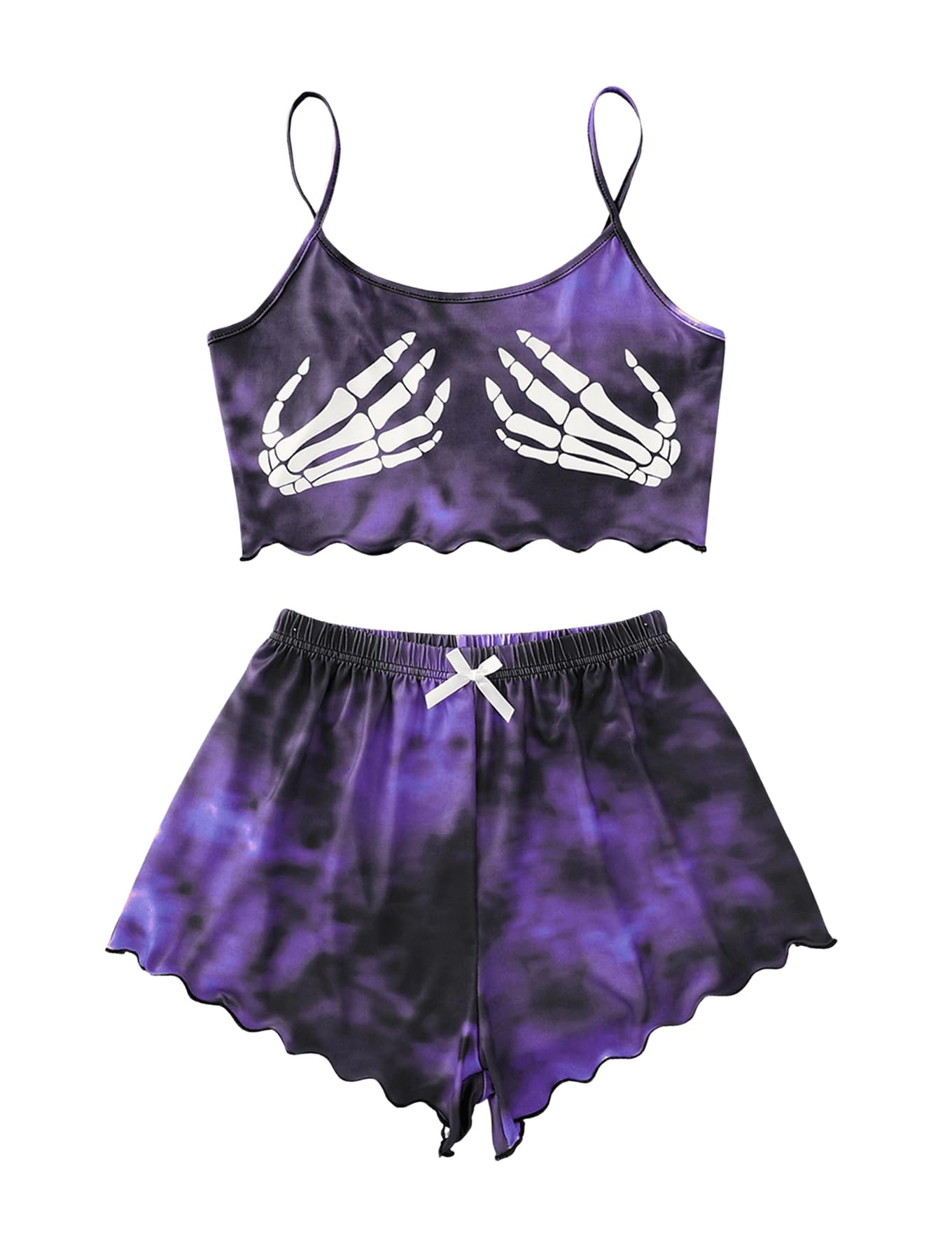 Universal BrandsWDIRARA Women's Plus Size Two Piece Goth Print Pajama Set Lettuce Trim Bow Front Cami Sleepwear