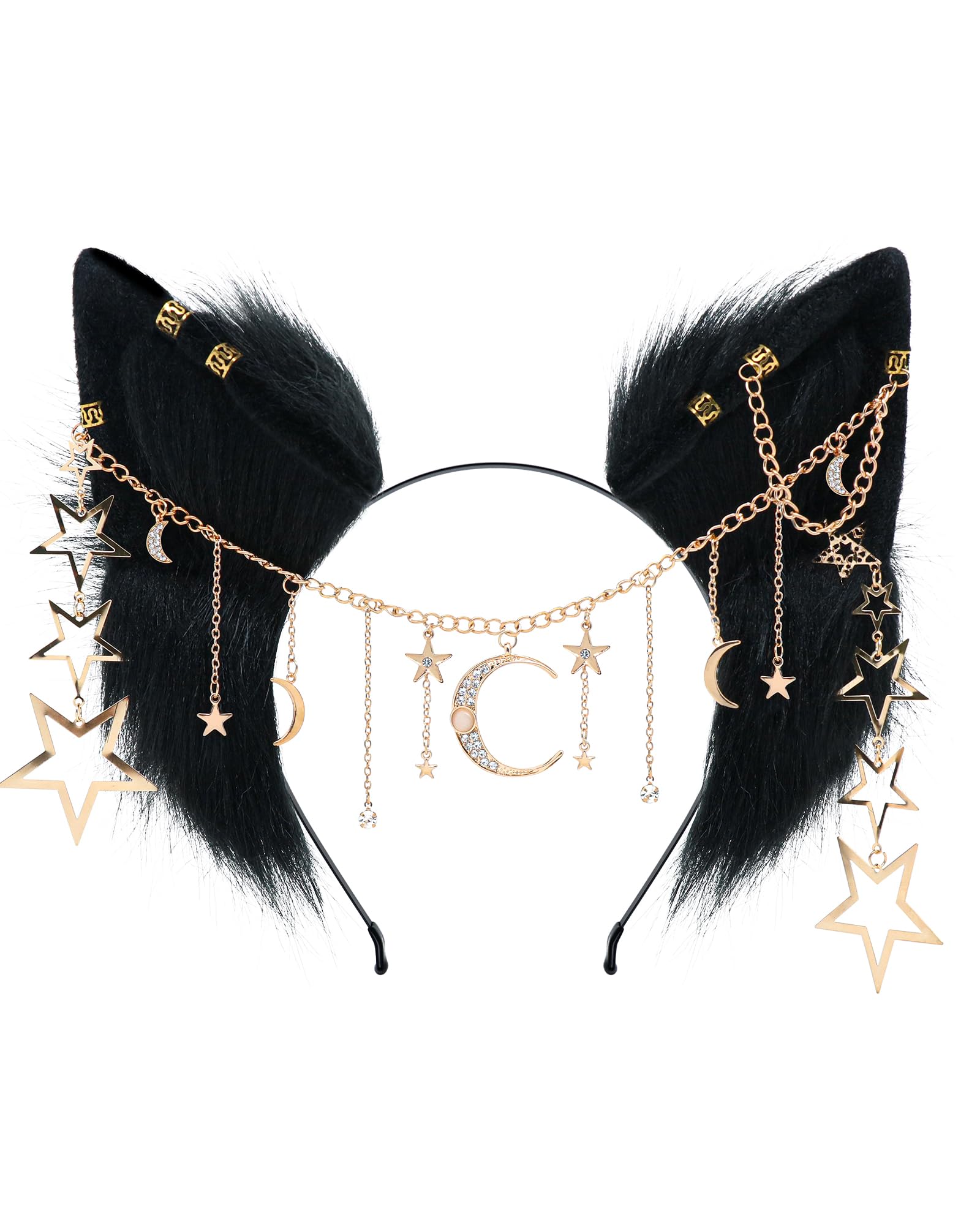 BNLIDESBNLIDES Handmade Furry Animal Ears Headwear Realistic Plush Adult Cosplay Accessory for Party, Anime and Convention Dress-Up: Galaxy Black