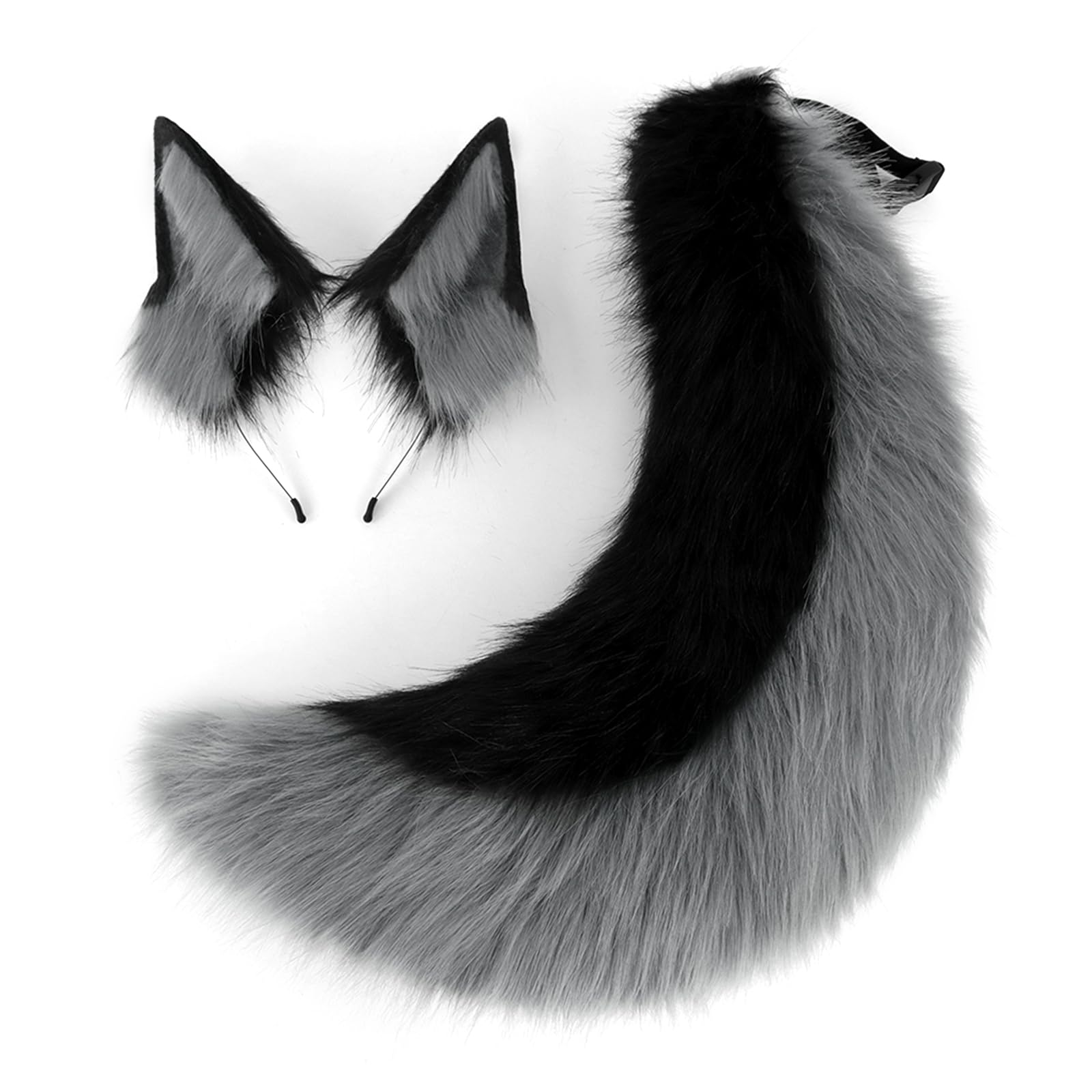 Universal BrandsFaux Fur Wolf Ears Headband & Furry Tail Set Realistic Wolf Costume Accessories for Halloween, Cosplay,Parties: Medium Grayblack