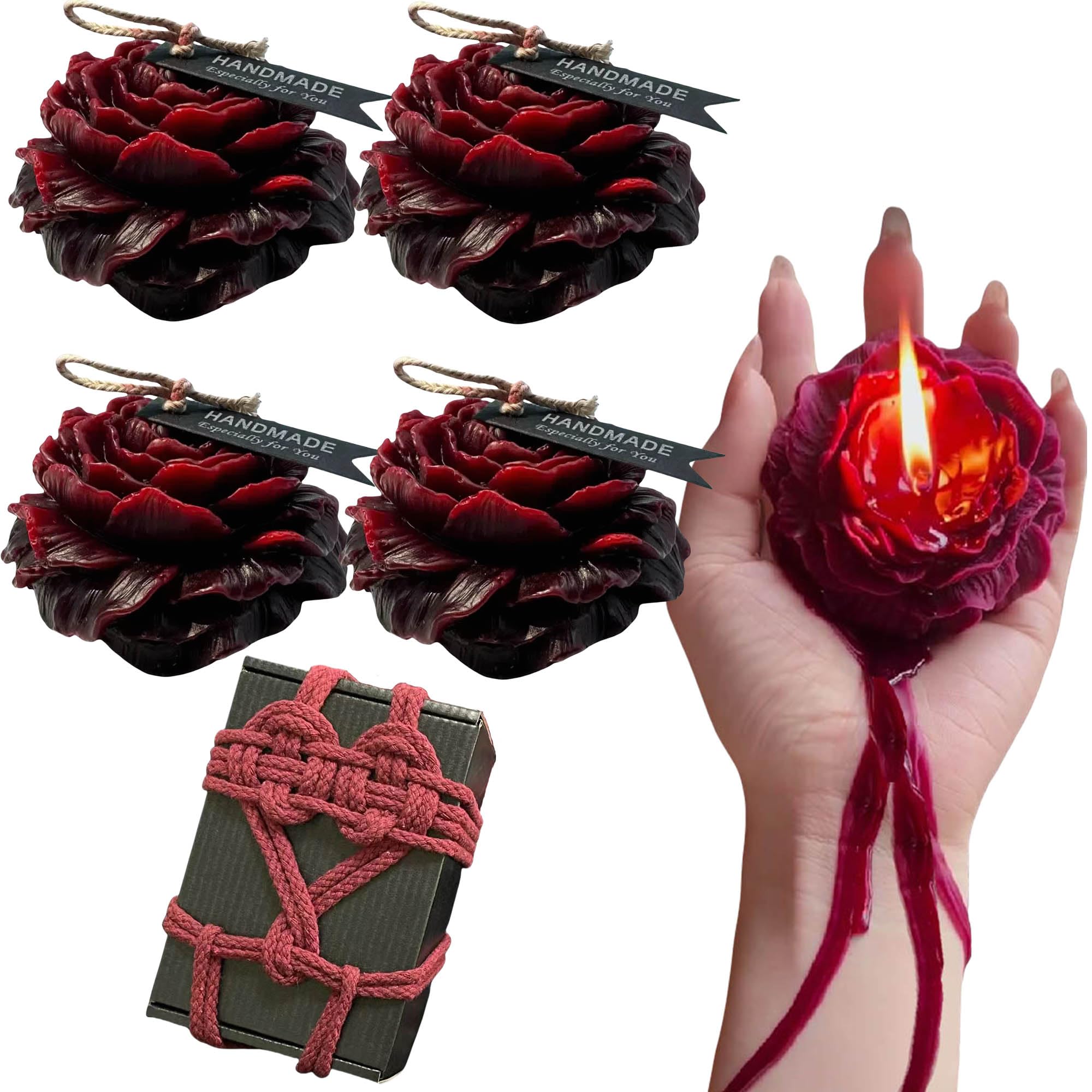 Universal Brands4 Pcs Low Temperature Candles Wine Red Peony Flower Shaped Scented Candles Adult Low Heat Body Safe Candles Wax Play for Couples Date Night