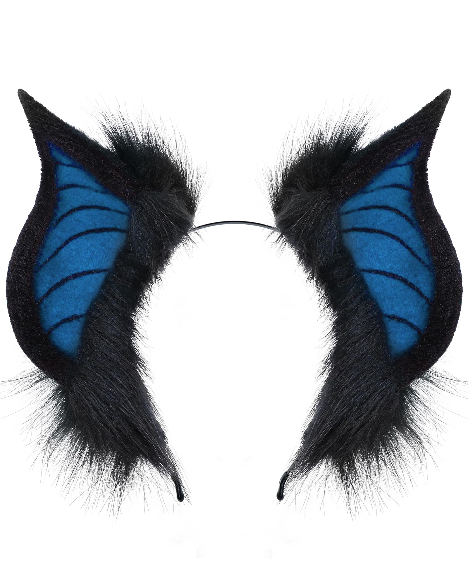 BNLIDESBNLIDES Handmade Bat Beast Ears Headband Adult Cosplay Costume Accessories for Halloween, Anime Con, Stage Performance: Black Blue