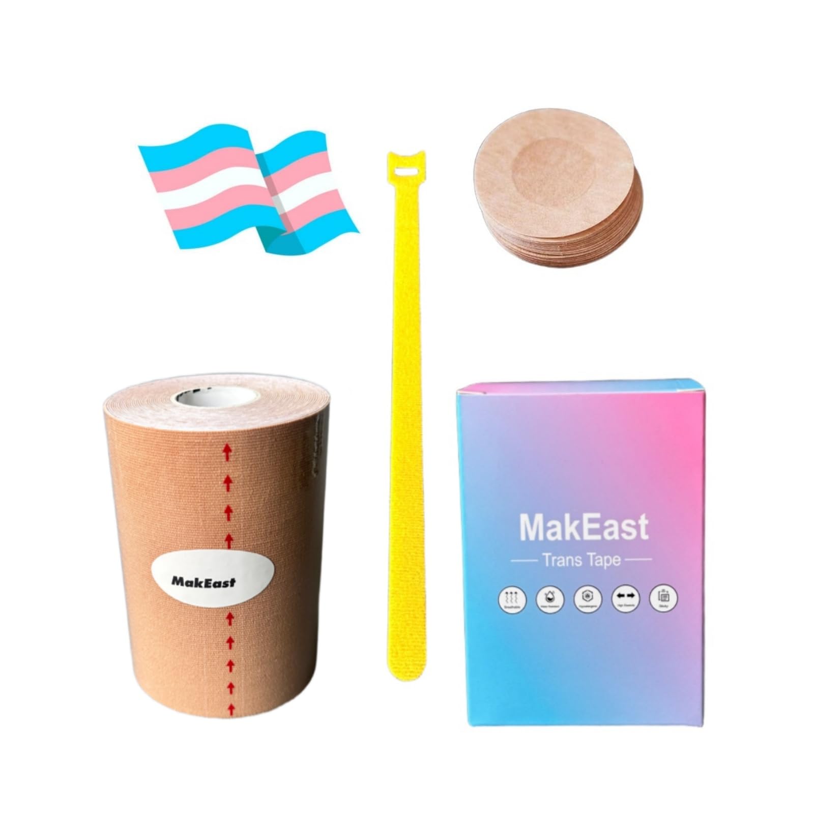MakEastMakEast Trans Tape for Transitioning Extra Wide Chest Binding Tape Latex Free FTM Chest Binder with Nipple Covers: Espresso