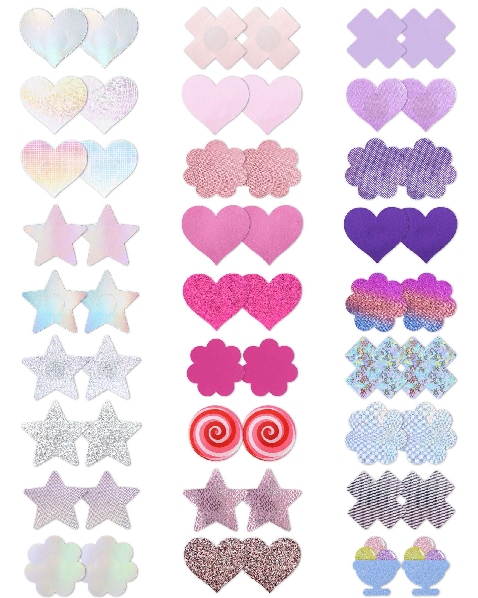 Universal BrandsCICKEE Pasties Rave Pack 27 Pairs Multicolor Nipple Covers Pasties Glitter Pasty: Multicolor-pink-purple-silver 27