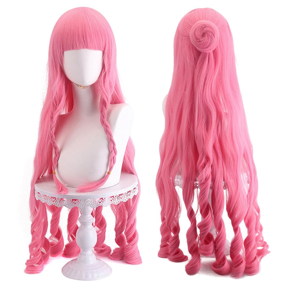 ShqncohShqncoh Anime OP Ghost Princess Perona Wig with Back Bun Light Pink Long Wavy Party Hair Halloween Cosplay Props Accessory