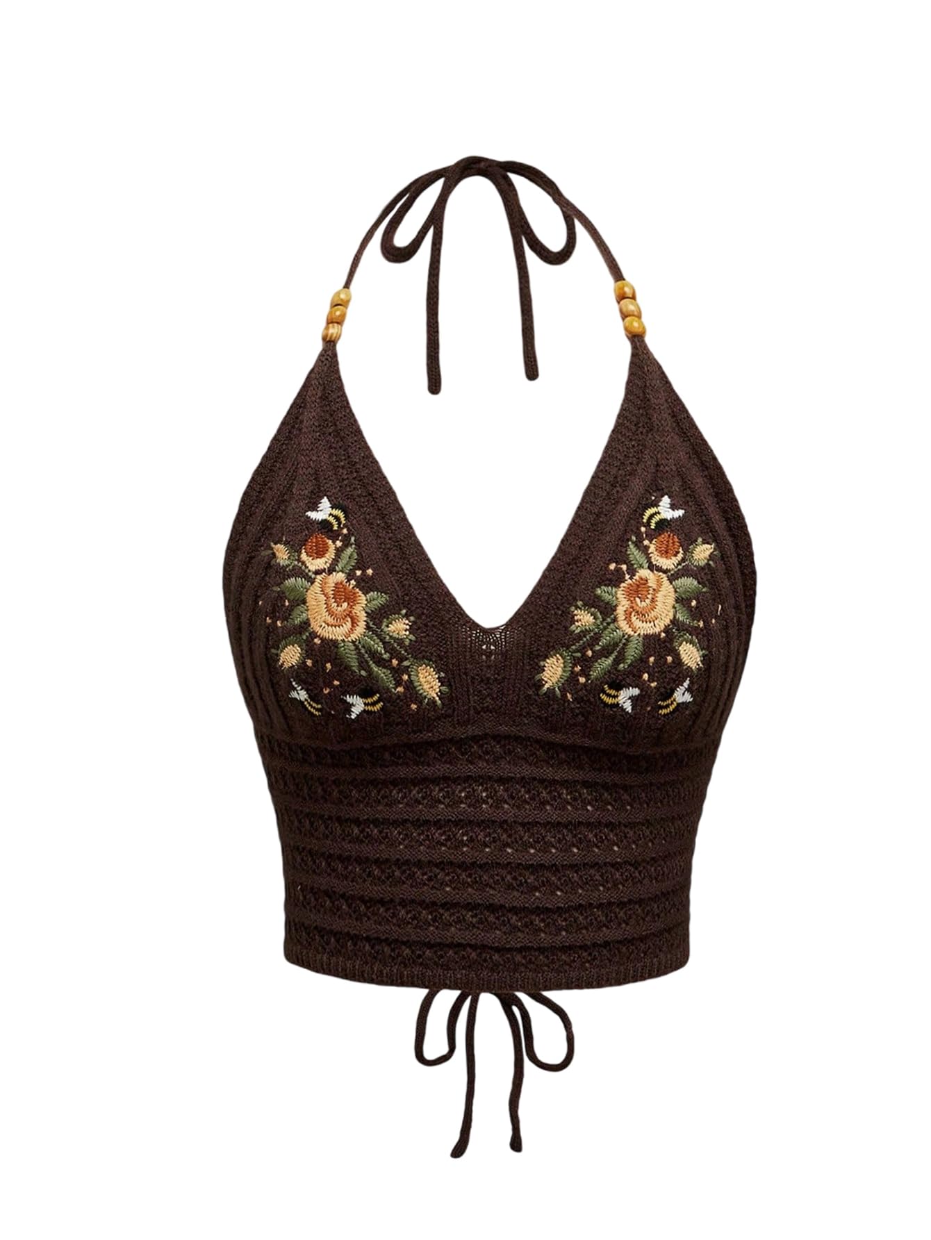 VerdusaVerdusa Women's Y2k Tops Nashville Outfits Boho Gothic Clothes Halter Top Festival Western Cowgirl Shirts: X-Large Floral Brown