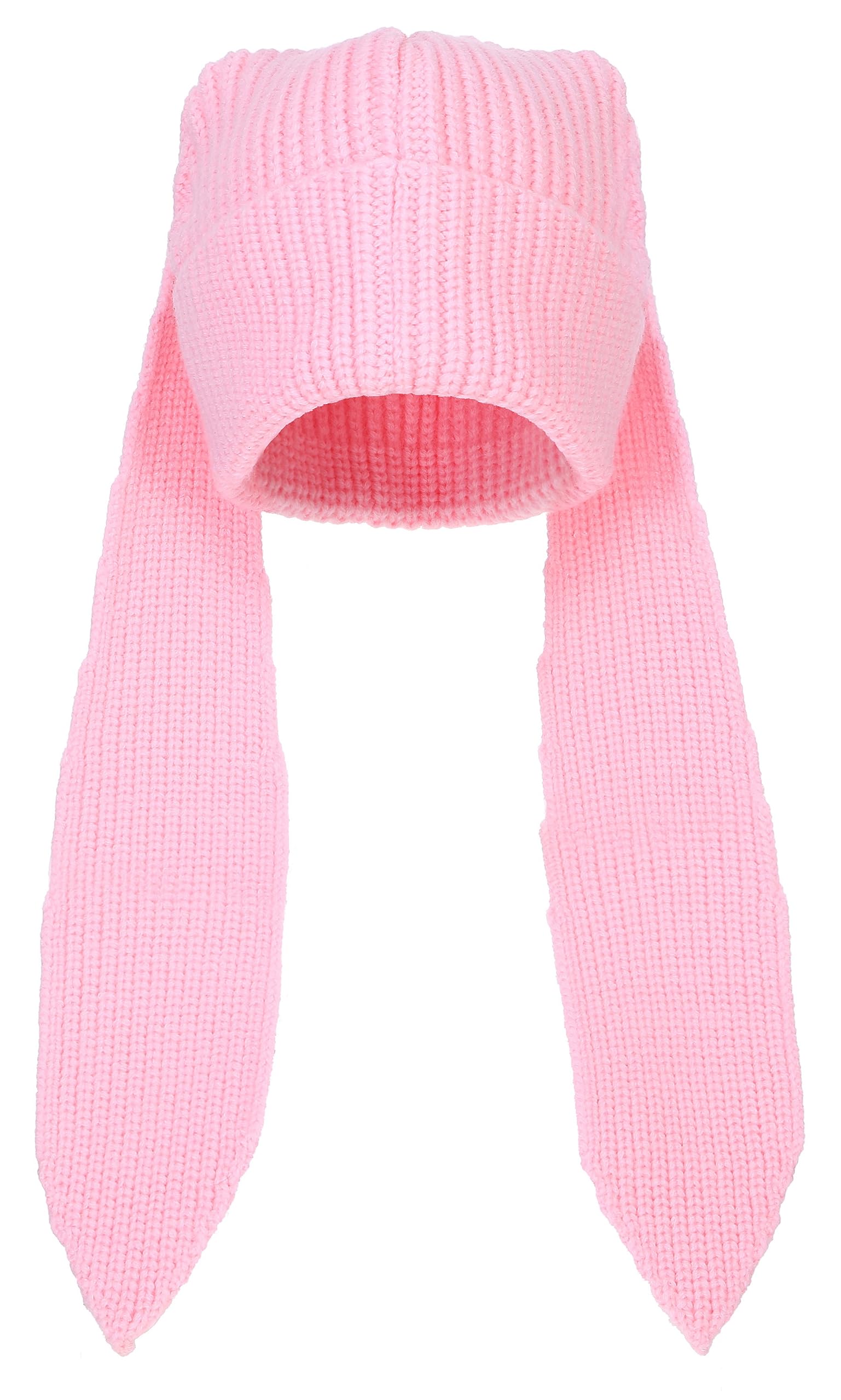 SolyinneKnit Beanie Hats Cute Bunny Long Ears Funny Hat Fluffy Winter Cap Warm Knit Rabbit Crochet Skull Cap Outdoor Slouchy Hat: One Size Pink
