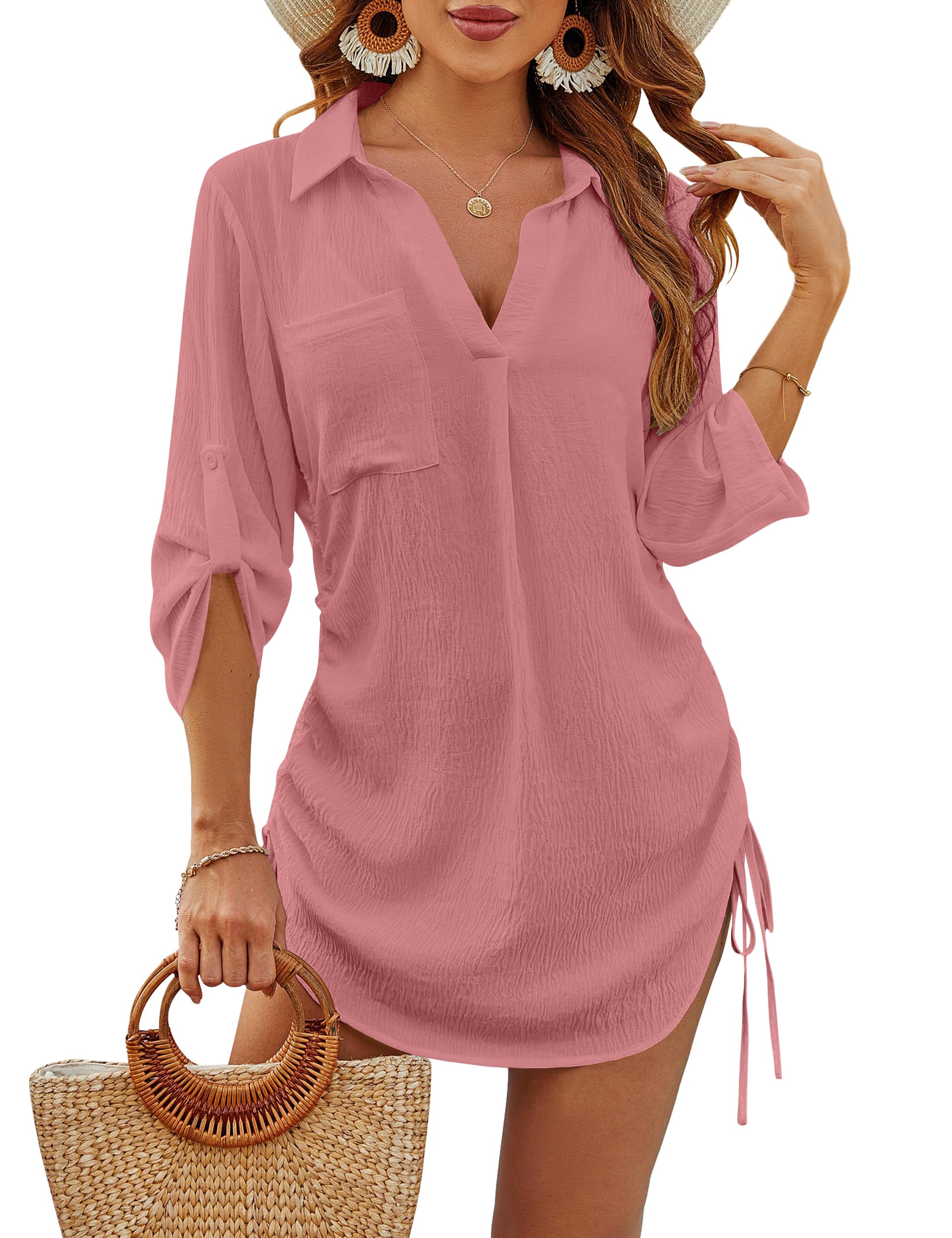 cruise dresses for women 2026 swim coverups for women 2026 bathing suit coverups for women 2026 swimdresses for women 2026 spring dresses for women 2026 sundresses for women 2026 vacation outfits for women 2026 dresses for women 2026 womens spring dresses 2026 swim suit cover ups for women 2026 summer outfits for women 2026 vacation summer beach dresses for women 2026 beach wear for women 2026 spring outfits for women 2026 spring clothes for women 2026 womens fashion 2026 womens spring fashion 2026 womens resort wear 2026 resort wear for women 2026 trendy womens cruise wear clothing 2026 vestidos de verano para mujer 2026 summer clothes for women 2026 womens vacation outfits 2026 Beach cover ups for women: 95% Polyester and 5% spandex material, a little transparency, lightweight and breathable bikini cover ups for women keep you cool and comfy on the hot summer Women's swimwear cover ups: Shirt collar, half sleeve with button cuffs, easily dress down and up. Interesting side drawstring design, can be adjusted at will, perfect to show your sexy curves Swimsuit cover up: The drawstring is easily adjustable. It is designed to be worn loose, can be used as a bathing suit cover up for women, casual shirt or women dress,and best match for bikini or any summer shorts. Occasion: Perfect for tropical vacation, swimming, beach & pool, honeymoon. Best holiday gifts for mom, wife, girlfriend or women you love. Note: We strongly suggest that you have your body measurements taken first, and then refer to our size chart before order, S=us 2-4, M=us 6-8, L=us 10, XL=us 12