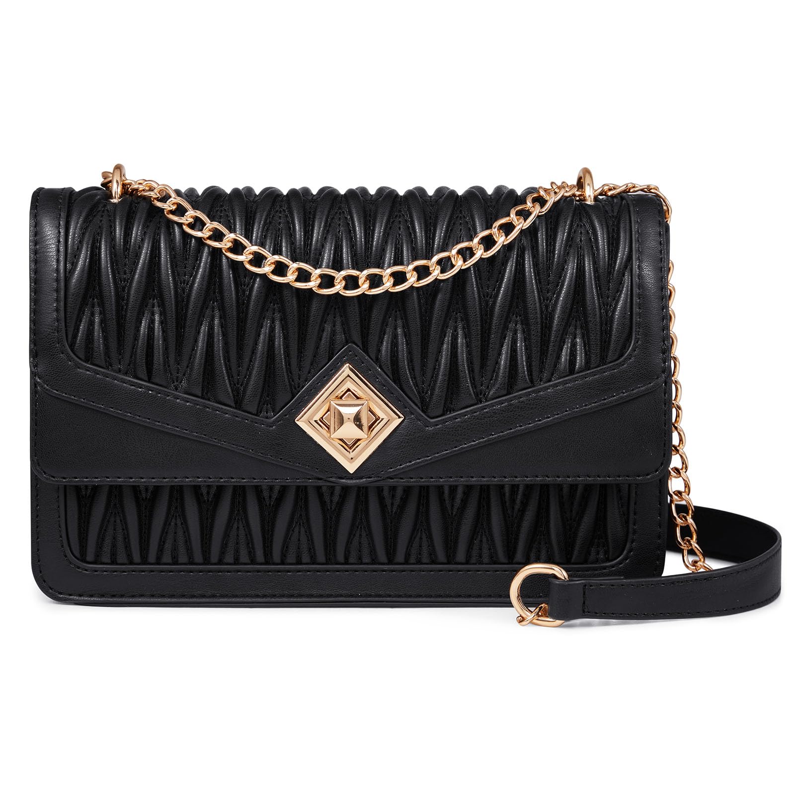 LOVEVOOK Crossbody Bags for Women Leather Quilted Shoulder Bag with Chain Strap Trendy Clutch Satchel Ladies Evening Bag