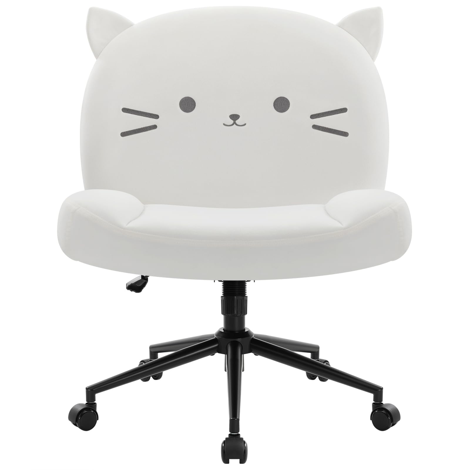 We are committed to manufacturing professional, ergonomic office chairs. We always put consumer needs first and integrate them into the development of new products. We strive to provide the best products and services, and adhere to the principle of putting the customer first to ensure that every one of our clients has a positive shopping experience. 1. It is designed exclusively for the younger generation, featuring a vertical stripe pattern design. It eliminates complexity for a simple, stylish look. 2. It is designed with ergonomic principles, and the backrest has a slight curve to enhance comfort. 3. Its skin-friendly fabric material and high-density foam structure enhance seating comfort. It offers a medium firmness and high elasticity. Cute Shape: We adorned this swivel chair with cute cat ears and embroidered a cat pattern on the backrest, making it appear even more lively and adorable. Its unique design enhances the beauty of the room with anyone who lays eyes upon them Stylish Armless Office Chair: With its comfortable and stylish design, the chair can be used in a variety of scenarios, meeting the diverse needs of modern individuals by removing the armrests. The wide office chair is featured with super smooth and stable 360° rolling wheels, which will not make noise when moving nor damage your floor. It perfect for offices, bedrooms, study rooms, living rooms, and dressing tables Wider Seat: Its widened and heightened design allows you to sit cross-legged or curl up comfortably in the chair. The backrest and seat filled with high-density foam and covered in velvet fabric provide you with comfort throughout the day, offering a more comfortable experience Multi-functional and Adjustable: With 4.8"" adjustable height, a rotation angle of 360°, and a tilt angle of 100°-120°, the office chair ensures that it offers the most comfortable height and angle for both work and leisure purposes. Additionally, the chair also has an SGS-certified level 3 lift to support up to 300 lbs, ensuring a long-lasting comfort Ergonomic Computer Chair: The ergonomic design of the chair, featuring a shell-like curved backrest and seat, conforms to the natural curvature of the spine. Its U-shaped design gradually releases pressure on the back and hips from the middle to the sides, facilitating posture adjustment and reducing work-related fatigue associated with prolonged sitting. It is perfect for adults and teenagers. It's also a great idea for family and friends Easy to Assemble: This office chair comes with all of the hardware and necessary tools, as well as detailed instructions. One person can easily assemble this chair in the office or at home