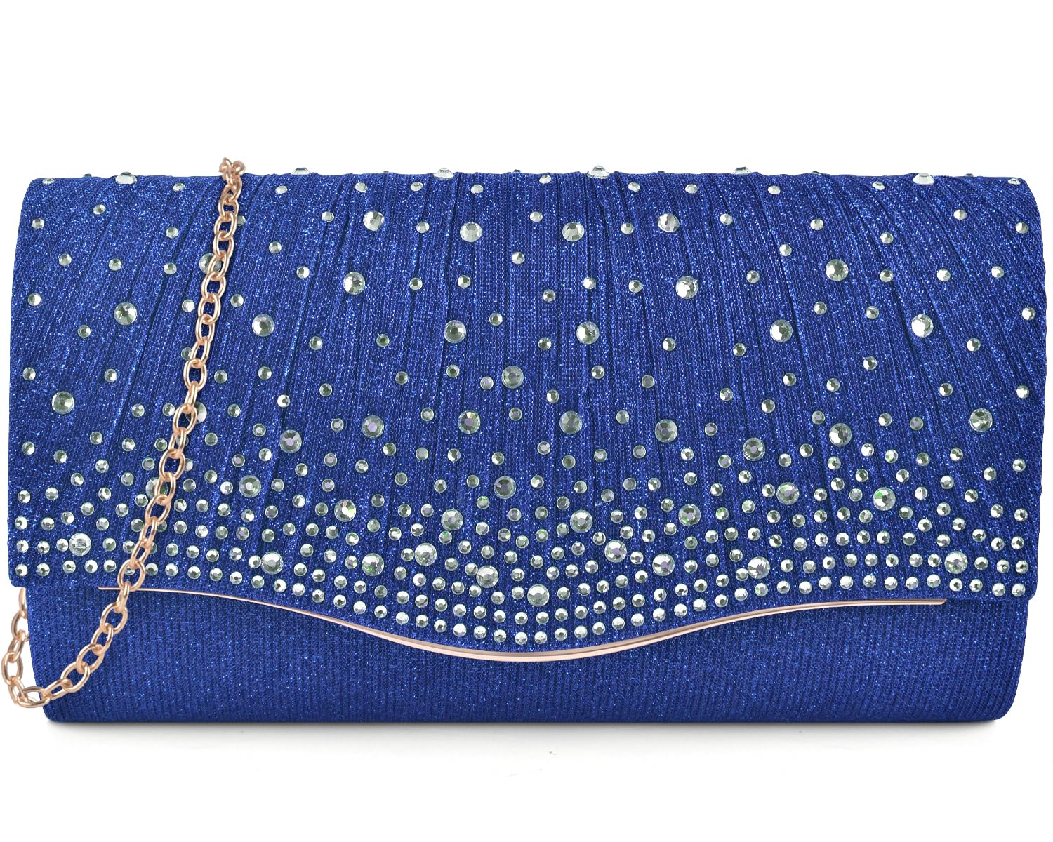Specification: Materials: Made from frabic with shimmer material, magnetic snap closure. Colors: Black, Silver, Apricot Feture: ★ Design: Made of high quality fabric, Subtly Pleated details, unique design, easy to match your shoes, dress,nail polish, etc. ★ Capacity: Enough room for daily basics like eyeglass, wallet, smartphone, makeup products etc. ★ Detail: Flap with magnetic snap, with a detachable quality chain, as a clutch by hands Or a Handbag hung on shoulders with the detachable chain ★ Occasions: Ideal for wedding, party, prom, banquet, date, important formal events, etc. Note please: The photo may slightly different from actual item in terms of color due to the lighting during photo shooting or the monitor's display. UNIQUE DESIGN - Front flap with magnetic button closure. Pretty envelope style. Made of high quality satin fabric, and silver metal trim detachable shoulder straps, and decorated with clear sparkly glitter rhinestones in varied sizes on flap. 3-in-1 STYLE - Coming with silver removable shoulder chain. Evening bag / Crossbody bag / Shoulder bag, which can be clutched by hands or hung on shoulders with the detachable chain. ENOUGH SPACE - 8.66*4.72*2.16inch, The handbags are roomy enough for most needed items, such as makeup brushes and lip sticks, feminine hygiene products, mobile phones, cards, money, car keys, small wallet and so on. OCCASION - The Clutch Purses for women are perfect choice for wedding Birthday, Homecoming, night out, prom, party and cocktail, bridal, or formal event. This tall evening envelope style clutch will make you glow during your special occasion. GREAT GIFT IDEA - Our clutch purse are great gifts for women of any age, which can match with any type of formal or casual outfit perfectly, not only serve the purpose of a fashion accessory, but also a useful bag to keep a small amount of items well organized.
