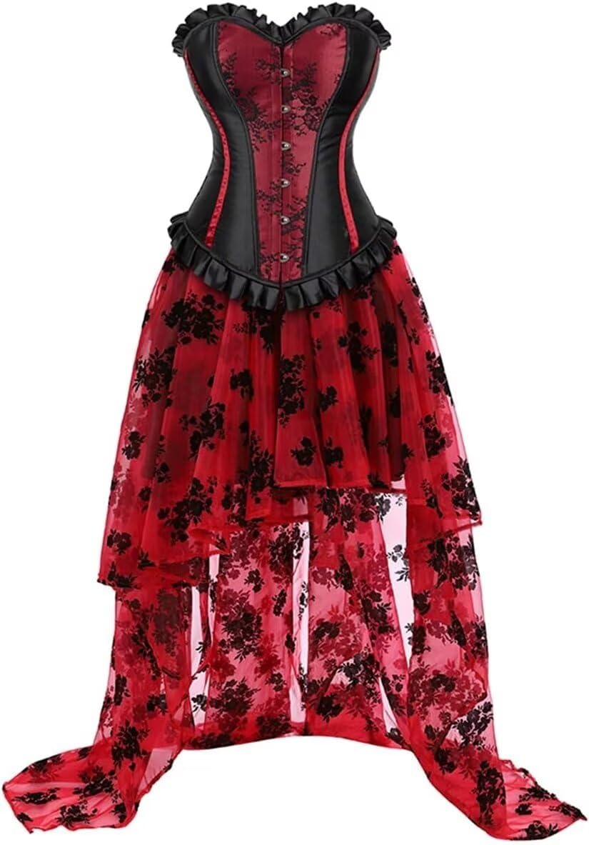 Corset Dress Skirt Long Asymmetry Women Lace pu Bustier Gothic Lingerie Plus Size