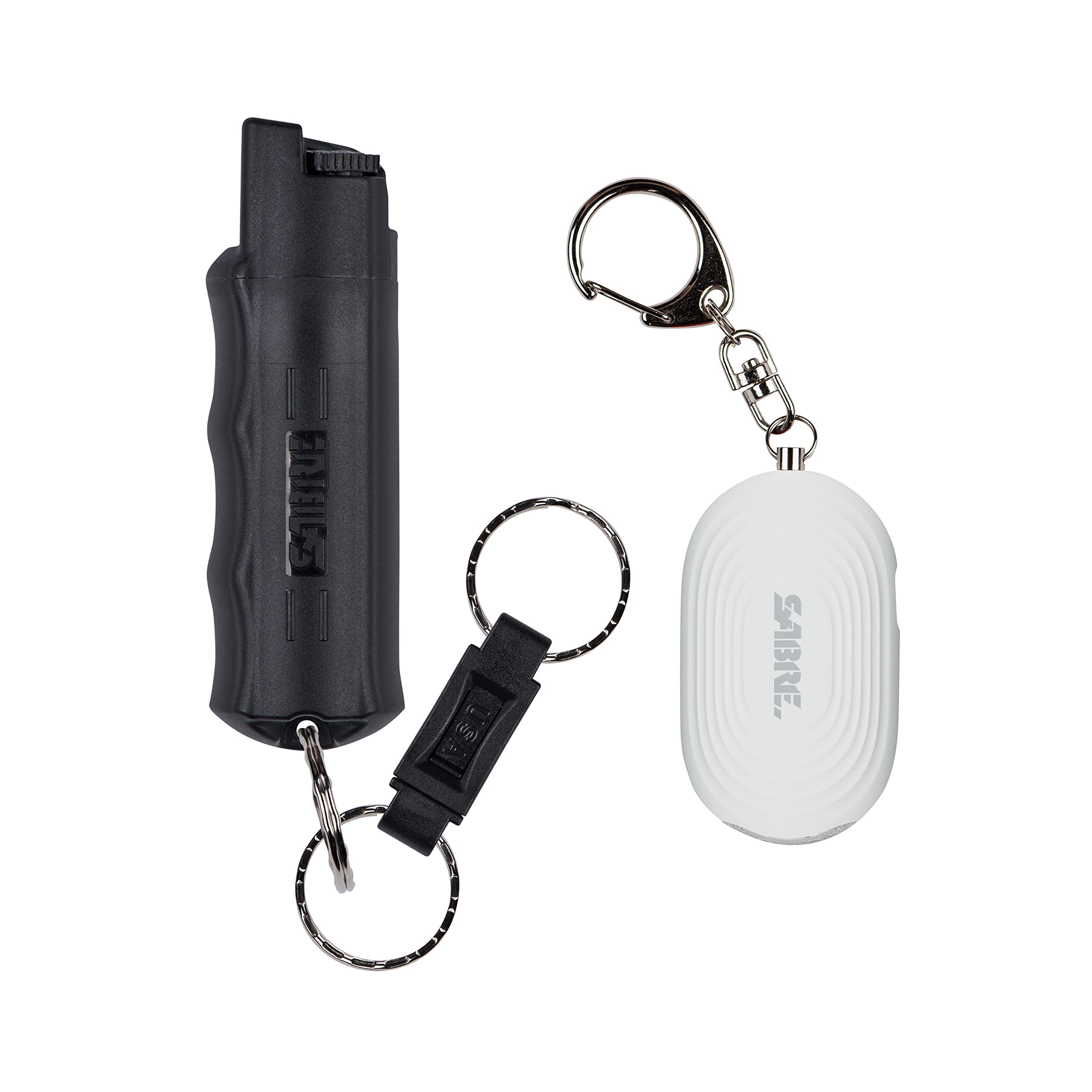 Stay safe with the ability to scare off a would-be attacker and protect yourself from a safer distance with the SABRE Personal Safety Kit. This kit comes with one (1) SABRE Pepper Spray with Key Chain and one (1) SABRE 2-in-1 Personal Alarm with LED Light. The SABRE Pepper Spray contains 25 powerful bursts (5x the competition) for protection against multiple threats at a safer distance. UV marking dye helps the authorities identify an attacker after they’re sprayed. Twist lock safety prevents an accidental discharge in your purse or pocket. When seconds count, the quick release key chain provides immediate access to your pepper spray even when attached to keys in the ignition or door. The SABRE Key Chain Personal Alarm with LED Light sounds an ear piercing 130db siren that can scare off and help deter an attacker by calling for the attention of people nearby. Personal alarm is easy to operate; Simply pull the key chain to remove the pin to sound the alarm. Replace the pin to turn the alarm off. Get multiple uses out of your personal alarm with a built-in, long lasting battery. Family owned and operated for more than 45 years, SABRE is the #1 brand trusted by consumers worldwide for pepper spray and is a leader in developing safety programs and safety videos to maximize end users’ safety. Empower yourself with extreme stopping power when you need it most. PERSONAL PROTECTION YOU CAN TRUST: SABRE is the #1 pepper spray brand trusted by police & consumers & a leader in the personal safety category. SABRE Pepper Spray is made in USA MAXIMUM STOPPING POWER: SABRE's professional-grade OC Spray is backed by our in-house lab testing, guaranteeing maximum heat and stopping power in every burst and eliminating the 30% failure rate of other pepper spray brands (U of Utah study) PROTECTION AT A SAFE DISTANCE AGAINST MULTIPLE THREATS: Includes a SABRE pepper spray canister with 25 bursts (5X the competition) for protection against multiple threat at a safer distance ATTENTION-GRABBING ALARM: Ear-piercing 130dB siren is audible up to 1,250-feet; Helps deter an attacker by attracting attention from those nearby so you can escape to safety STAY SAFE WITH FREE SAFETY TRAINING: Feel secure with every SABRE product; Packaging includes links to free training videos so that, in the face of danger, you are better prepared to use your SABRE Pepper Spray