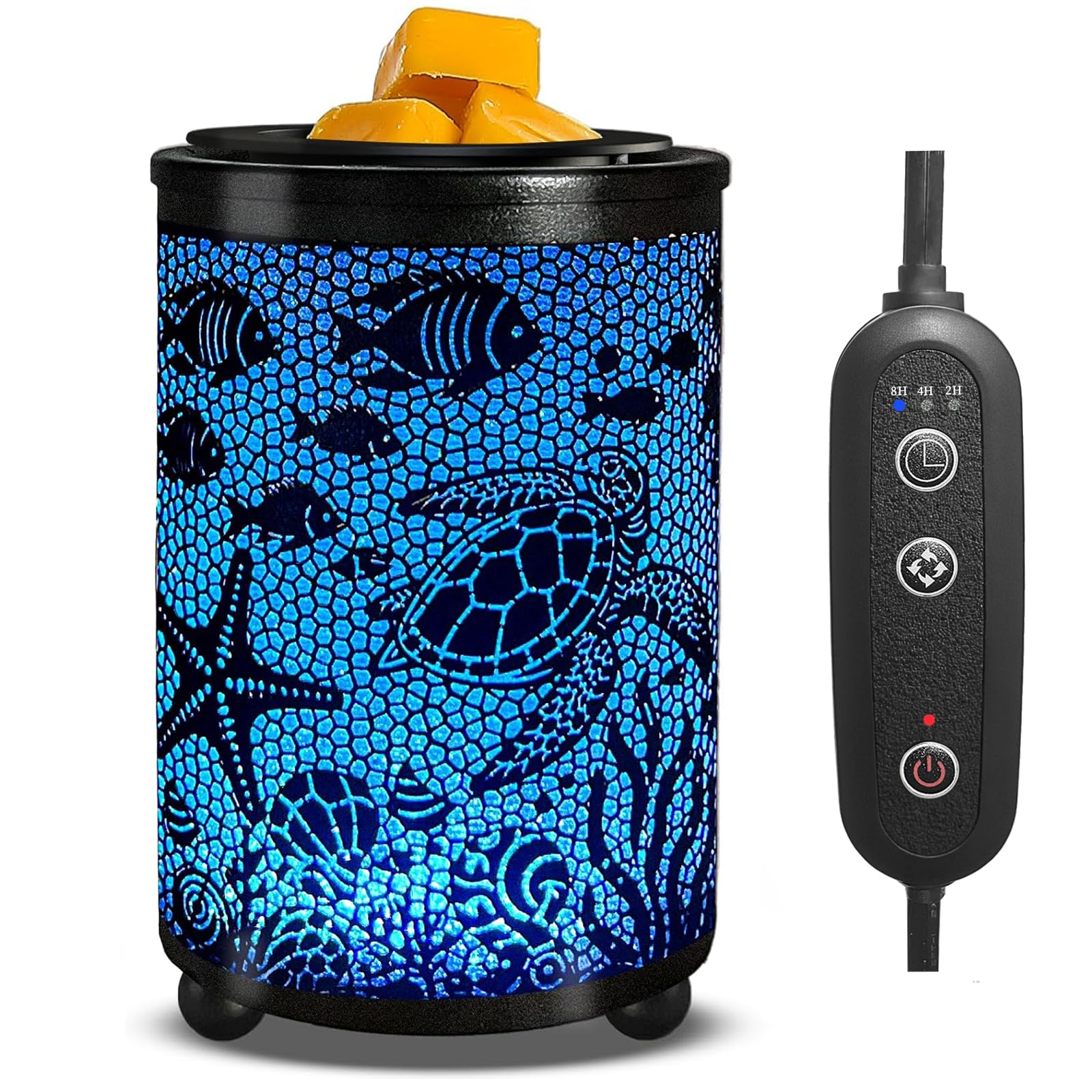 SpecificationsMaterial: Iron artProduct Size: 3.7x 5.5"Weight: 1 lbInput: 120V 50/60HzRated Voltage and Power: 120V, 25W Packaging Content1 x ?Electric Candle Warmer1 x Dish Unique Forest Design: The wrought iron Wax Melt Warmer features an exquisite forest design, bringing a blend of nature and art to your space, creating a warm and inviting atmosphere. Convenient Cleaning: With a cleverly designed detachable silicone wax tray, cleaning wax residue becomes effortless, saving you time and effort. Keep your Warmer tidy and hygienic without the hassle of cleaning. Advanced PTC Heating: Utilizing advanced PTC heating technology eliminates the need for traditional light bulbs, solving the problem of frequent replacements. This ensures a longer lifespan and provides a consistent and stable warmth experience. Smart Temperature Control: The intelligent constant temperature design requires no manual adjustment, ensuring you always enjoy the perfect warmth. All of this is achieved in an environment free from open flames, smoke, and pollution, ensuring fresh air in your living space. Rich Lighting Experience: Equipped with a built-in seven-color LED night light, you can choose a fixed color or enjoy automatic color changes, creating a unique ambiance. Whether setting a romantic mood or adding a splash of color to your space, it caters to your diverse needs.