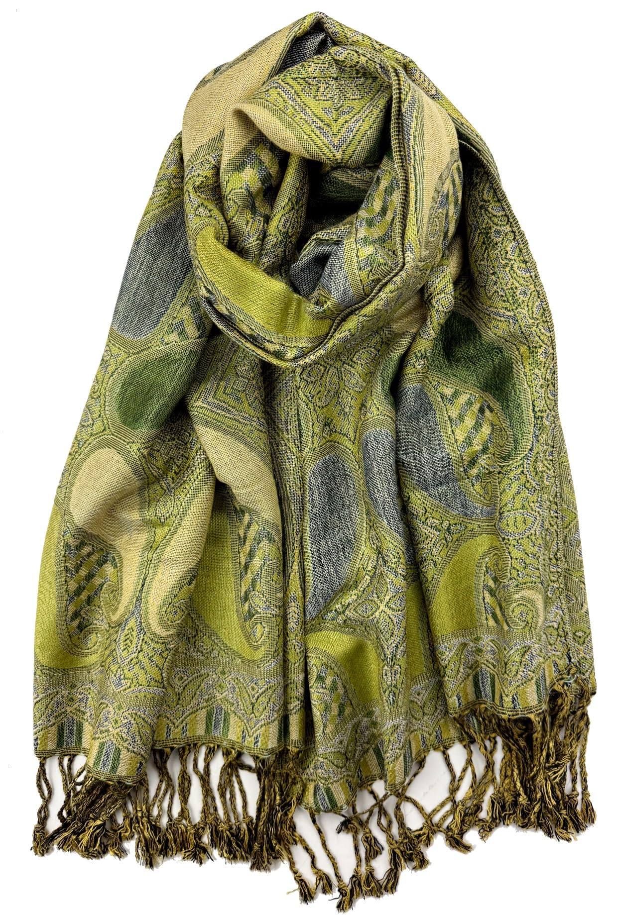 Plum Feathers Tapestry Ethnic Paisley Pattern Pashmina Shawl Scarf, Womens Pashmina Shawl Wrap with Fringes: Olive Teardrop Paisley