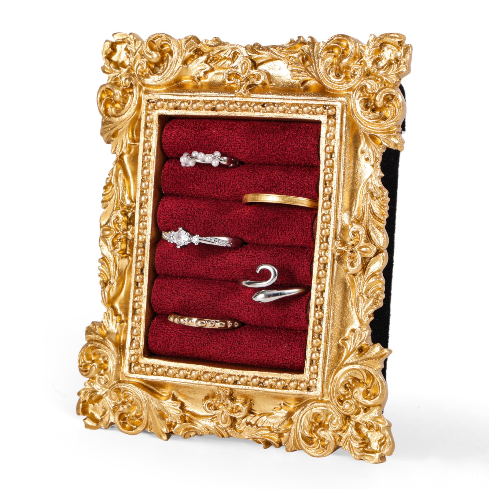 Mikovivi Vintage Ring Display Stand, Baroque Ring Holder Earring Display Tray Jewelry Organizer Birthday Engagement Wedding Decoration for Women (): Wine Red