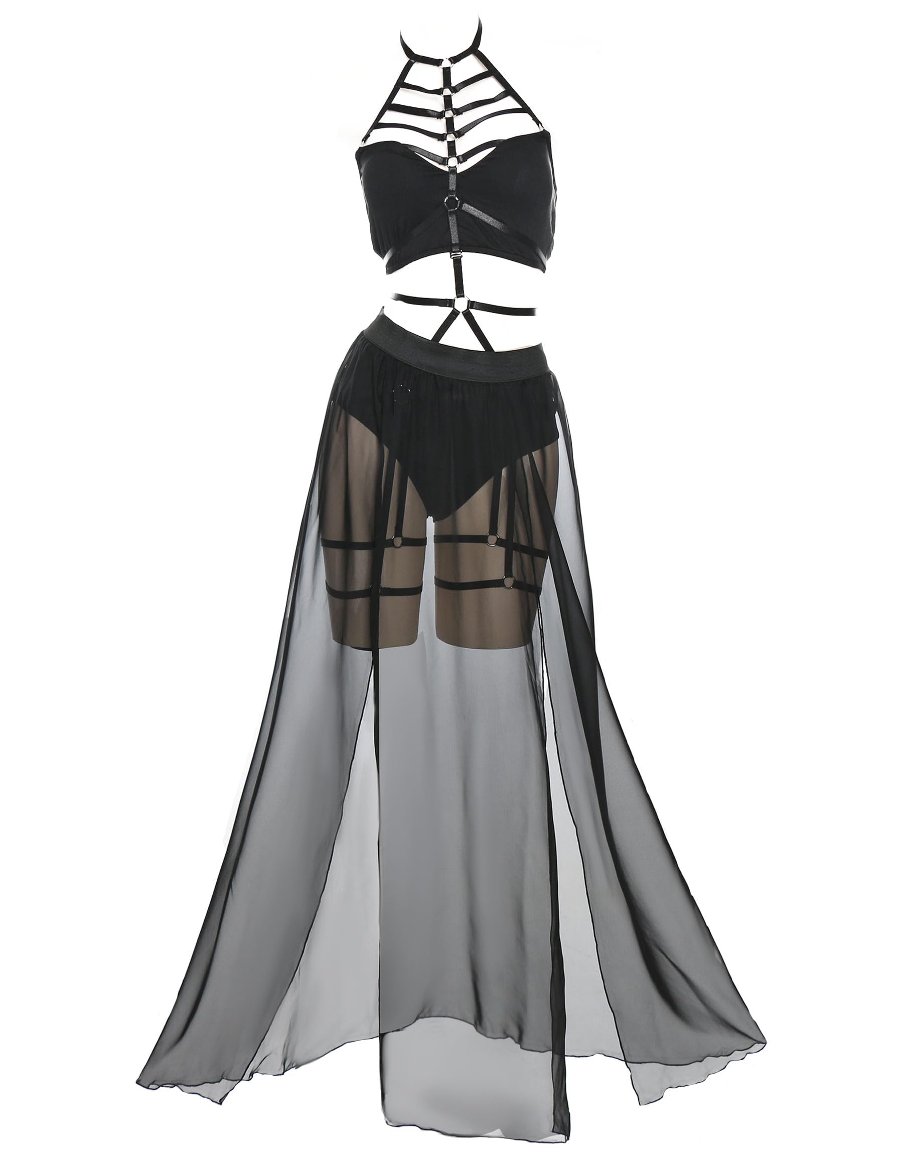 MEOWCOS Gothic Dress Set Vintage Top and Short with Chiffon Skirt