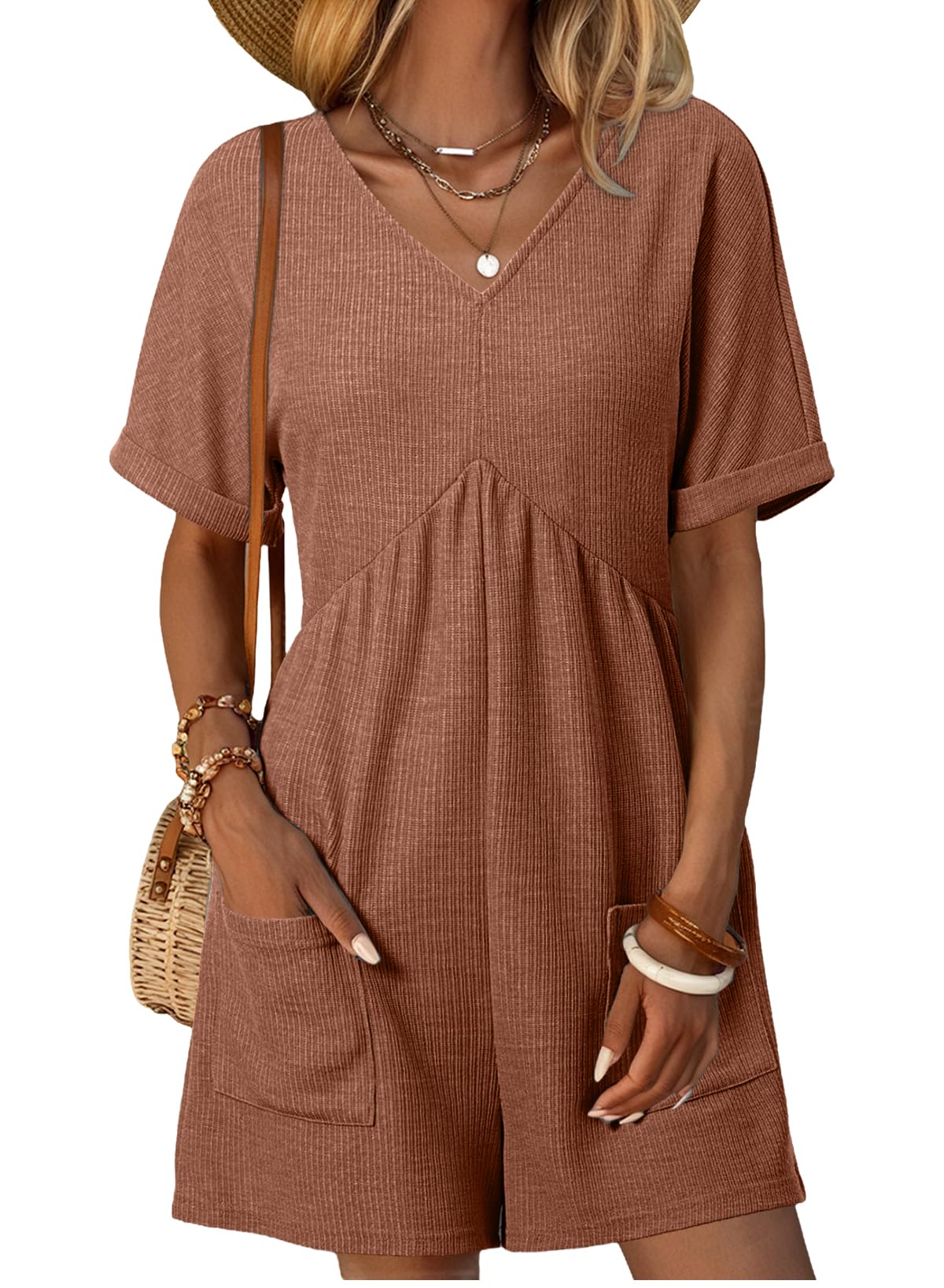 AlvaQ Women's Romper is made with lightweight and soft material, which are comfortable , elastic and stretchable, flexible and breathable to wear. Not see through. Feature: One Piece Short Sleeve Jumpsuits, Two Front Pockets, Solid Color, High Waist, V Neck, Loose Fit, Casual Style. Match: Great with jacket, sneakers, Sandals, Heels and Beach hat for outwear. A perfect jumpsuit for your summer. Wear a cardigan over casual jumpsuit on cool weather. Ocassion: one piece fashion long jumpsuit suitable for beach, party, vacation, office, streetwear, cocktail, daily life. Garment Care:This v neck jumpsuit rompers is recommended to wash by hand or machine with cold water, do not bleach, hang or line dry to increase the durability of this loose fit rompers. AlvaQ Women's Rompers is made with lightweight and soft material. IF LIKE LOOSE AND COMFY , PLEASE CHOOSE ONE MORE SIZE Feature: One piece jumpsuits, two front Pockets, solid color, v neck, short sleeve, it has a high waistline and good elasticity, which makes you look taller and thinner Match: Great with jacket,sneakers,sandals,heels and beach hat for outwear. A perfect jumpsuit for your summer. Wear a cardigan over casual jumpsuit on cool weather Occasion: This Short Romper is glad for women summer,spring,fall, home, going out, party, work, beach, nightdress, elegant and casual wear Garment Care:This short jumpsuit rompers is recommended to wash by hand or machine with cold water, do not bleach, hang or line dry to increase the durability of this loose fit rompers