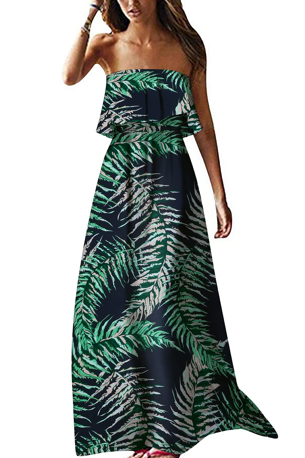 95% rayon + 5% spandex. These off shoulder maxi sundresses are made of brand new and high-quality fabric. soft, lightweight, comfy, unstretchy and breathable. A perfect sun dress for spring, summer and fall. The perfect casual summertime essential! The boho maxi long dress features beautiful layered design, strapless ruffle bust, vintage floral print, cold shoulder, elastic waist, ankle length. Put it on to attain a cool summer. The plus size tube top sundress is designed with loose style that hide belly fat. Not only a perfect maternity dress for photoshoot but also a perfect body shaper for curvy women. The bohemian floral dress is perfect for summer hawaiian beach dates, vacations, parties, weddings, clubs, and daily wear, even for easter and other special occasions. This dress makes you look like a supermodel, easily catching others' eyes. The boho dress is flowy, lightweight, cool and not see-through, it flows like the wind when walking, super comfy and flattering. Perfect pair with sunglasses, jewelry, cute sandals for a cool summer look! An essential summer-long dress in your wardrobe.