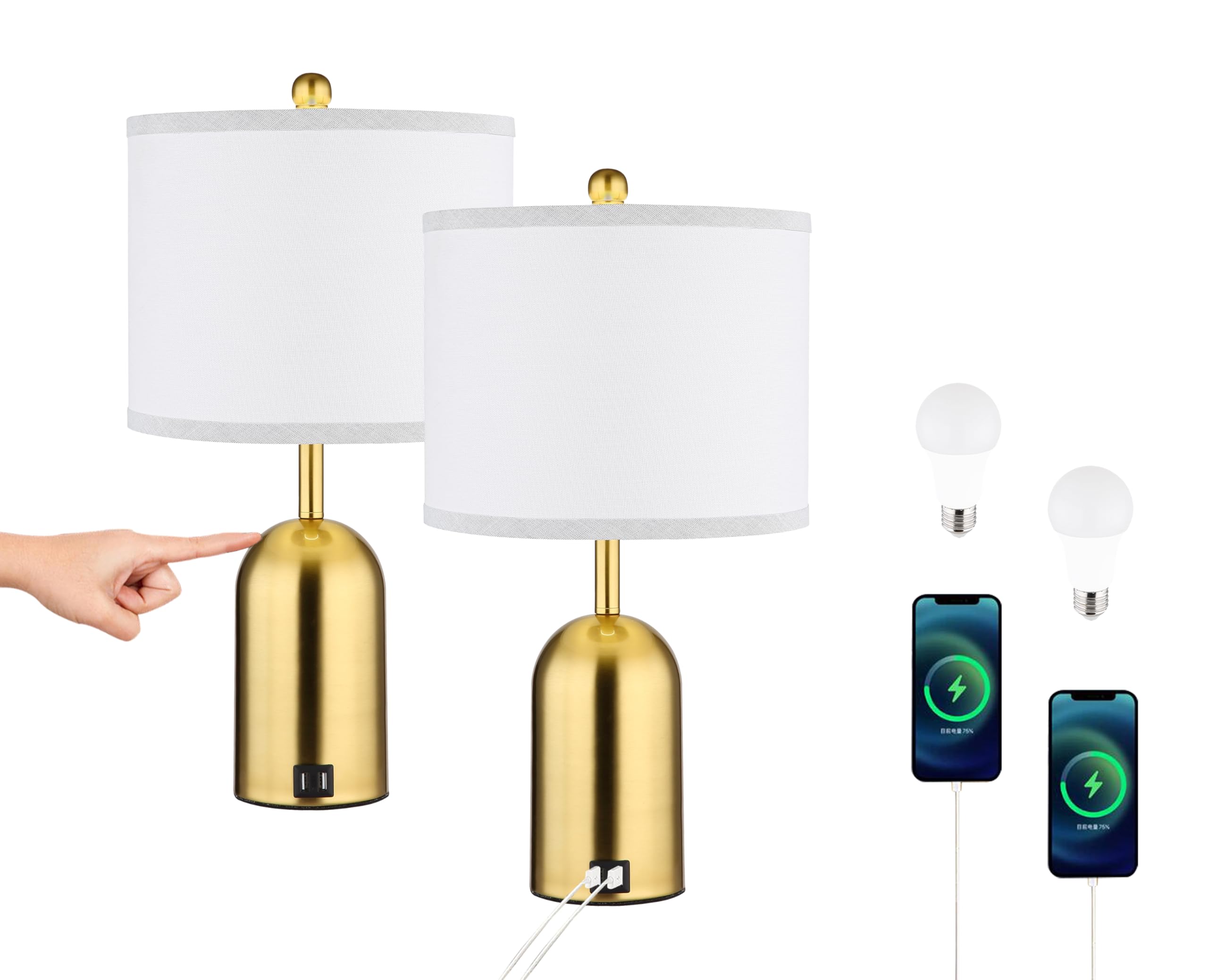 Ldeco Touch Dimmer Table Lamp for Bedroom,Bedside Lamp with USB Port Elegant Nightstand Lamp with Fabric Shade,Gold Modern Desk Lamp for Living Room,Office,Bulb incl. Upgraded Elegant Gold Plated Finish: Ldeco Table Lamp is Designed by Modern Elegant Gold plated finish,which can reflesh your room with younger and lovely. 3 Way Touch Dimmer: Ldeco Table lamp comes wih 3 way touch dimmer switch on the base,which is very convenient for customer to use it,you can touch any metal part to conrol this lamp and choose the brighness you want. Dimmer LED Bulb is Included: Our Desk lamp is packed with 2 dimmer LED bulbs,both is 9W,bright enough for your room,it is eyes protected and the lights will go through the white fabric shade which give you a warm and confortable feeling. Dual USB Charging: Bedside Lamp is wih 2 USB port,support 5V 2.1A USB charging,no mattter the lamp is touch on or off,you can charge you phone,tablet kindle directly. 3 Years Warranty: Ldeco supply all the customers 3 Year Warranty,if your products have any quality issue top welcome to contact us to serve you better .