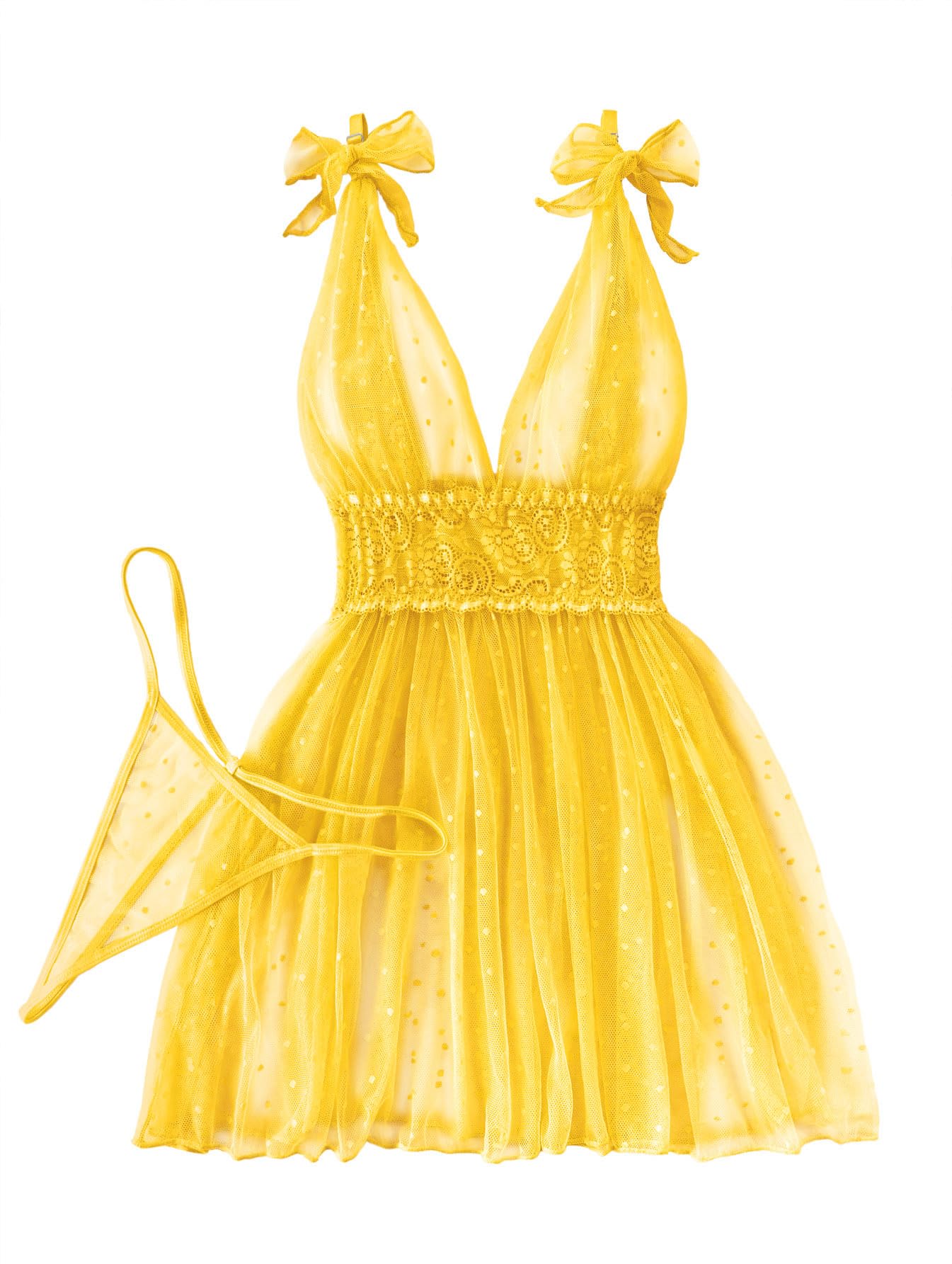 Lilosy Sexy Polka Dots Mesh Sheer Lace Babydoll Chemise Lingerie Set Floral Sleep Wear