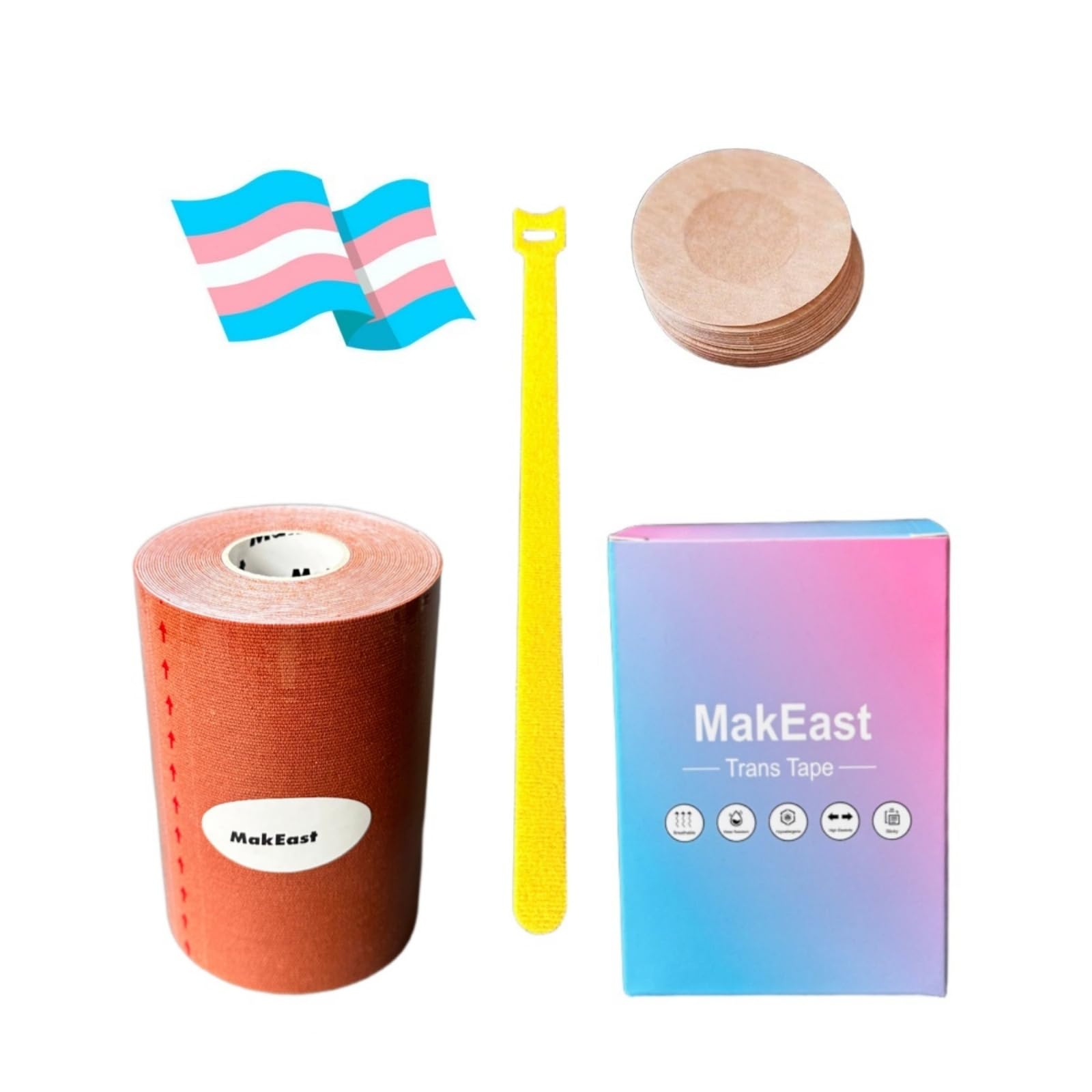 MakEast Trans Tape for Transitioning Extra Wide Chest Binding Tape Latex Free FTM Chest Binder with Nipple Covers Ultra Sticky Waterproof & Flexible 4 in X 16.5 ft; Made from a blend of 96% cotton and 4% spandex with a hypoallergenic medical-grade acrylic adhesive that is latex-free and non-medicated. Comfortable | Made from a blend of 96% cotton and 4% spandex with a hypoallergenic medical-grade acrylic adhesive that is latex-free and non-medicated. Strong Hold & Adhesion | Our trans tape provides a strong, waterproof hold that will last long and swim friendly. Stay in Place | Our binder tape can be attached at the position you like and gather your breasts exactly where you desire. Aftercare | Put some baby / cooking oil on the tape and soak in a few minutes, or get the tape wet and remove it slowly in the direction of hair growth. Alternative | In order to make you more comfortable - nipple covers to protect your nipples, use with the tape to achieve better results! Package includes 1 roll 4" x 16.5 ft binding tape, 10 pcs nipple covers, a velcro strip and a user manual.