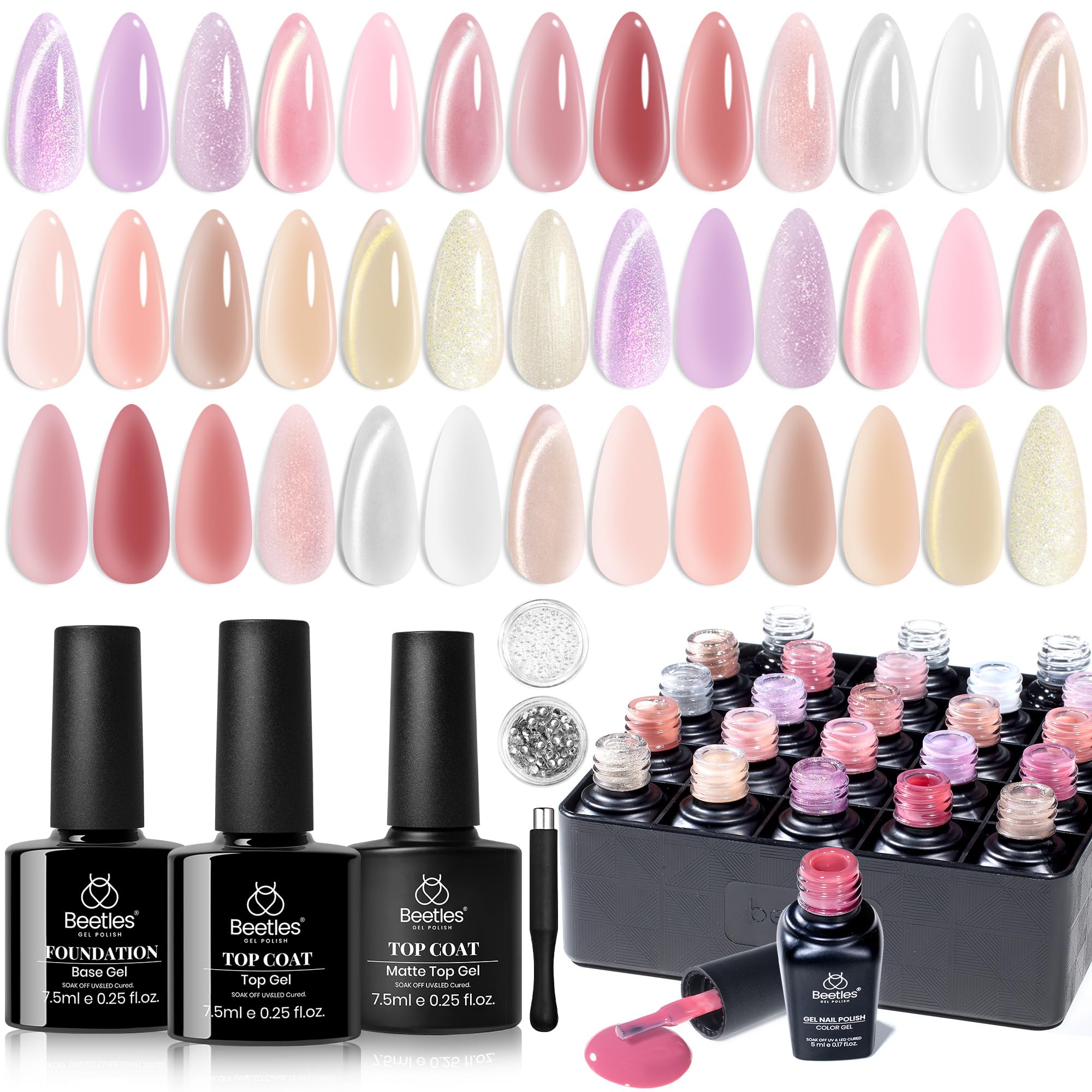 July 4th Gel Nail Polish Set Red Navy Blue Gel Nail Polish, White Gel Nail Polish, Pink Gel Nail Polish, Summer Nail Design What you get: Beetles 2024 Nails Trend Colors - 20 Gorgeous Shades of Gel Nail Polish Kit. 20 X Mini Gel Colors (5ml/each bottle) + 3 X No-Wipe Base and Glossy & Matte Top Coat (7.5ml/each bottle).It is recommended to use base gel before applying color gel. For optimal results, we strongly recommend using UV LED lights to cure for 60-120s. Harmless and Health: Made with 9 harmless ingredients and odorless, so it won't damage nails. It doesn't contain irritating ingredients or binders that may cause nail damage. Durable and Long-lasting: When used correctly, our gel polish can provide approximately 28 days of lasting effect. It strengthens and protects your nails while providing a hard, resistant surface that is less prone to breakage. Additionally, it has excellent flexibility and adhesion, making application easier and more effective. Furthermore, its smoothness allows for easy application and convenient removal, ensuring the convenience and comfort of using our gel polish. Versatile Color Options: Our gel polish kit is available in a range of colors, including pink, blue, black, brown, and glitter, suitable for various occasions. Whether you prefer a classic solid color or want to experiment with vibrant combinations, you can enjoy a safer, healthier, and more affordable home nail experience with family and friends, saving time and money. Say goodbye to the struggle of choosing a color gift set and unleash your creativity! 【Warning】This product is professionally formulated and should be used only for nails. Read directions for use carefully. Avoid contact with eyes, mouth, and skin. In case of contact with eyes, mouth, or skin, rinse immediately with water. If any adverse reaction occurs, seek medical attention immediately. Stop using the product if redness and itching develop. Keep out of reach of children.