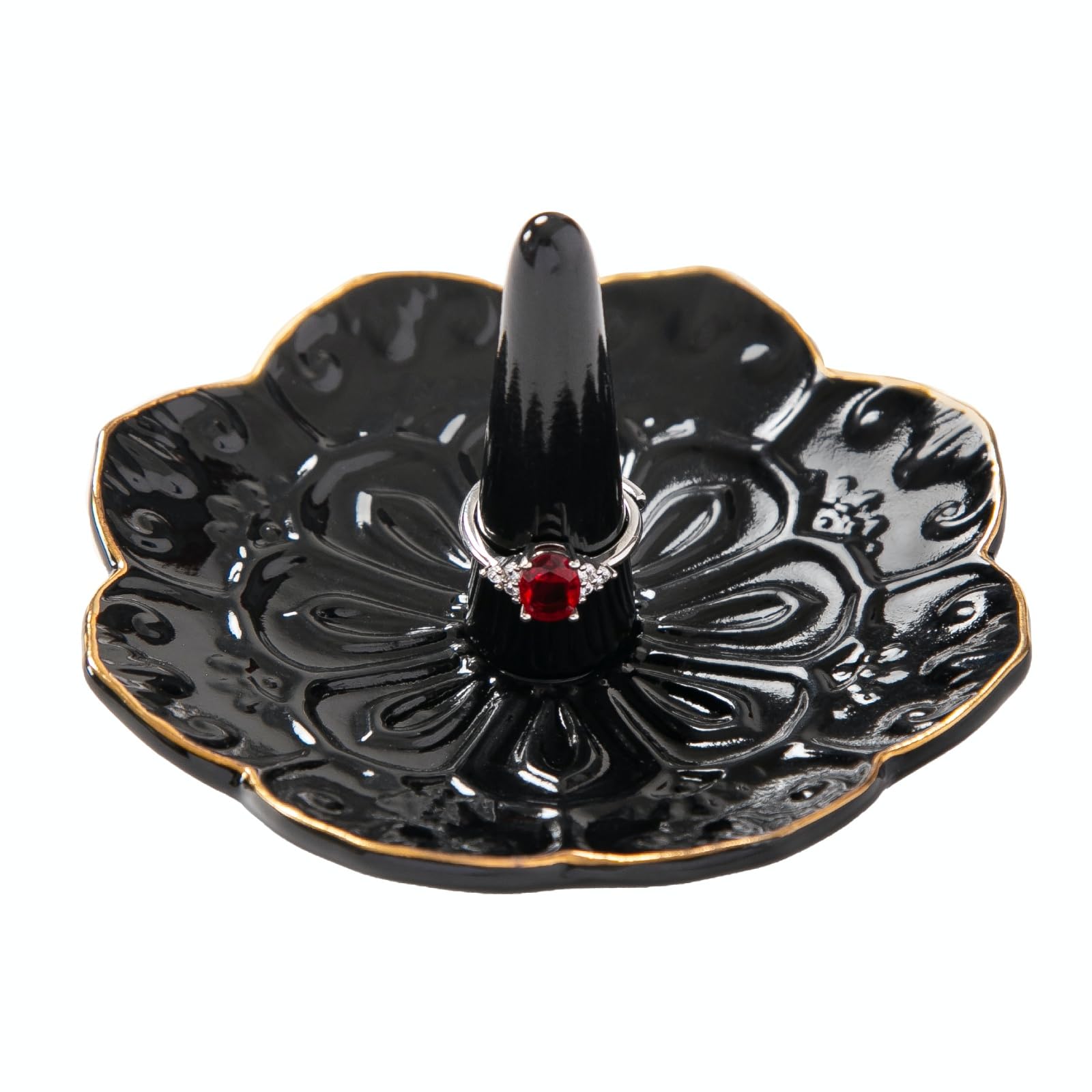 HOMEGOAL Ceramic Ring Holder Dish for Jewelry, Decorative Mandala Jewelry Tray for Rings Earrings Necklaces Watch Keys, Aesthetic Room Decor, Birthday Engagement Wedding Gifts for Women (): Black