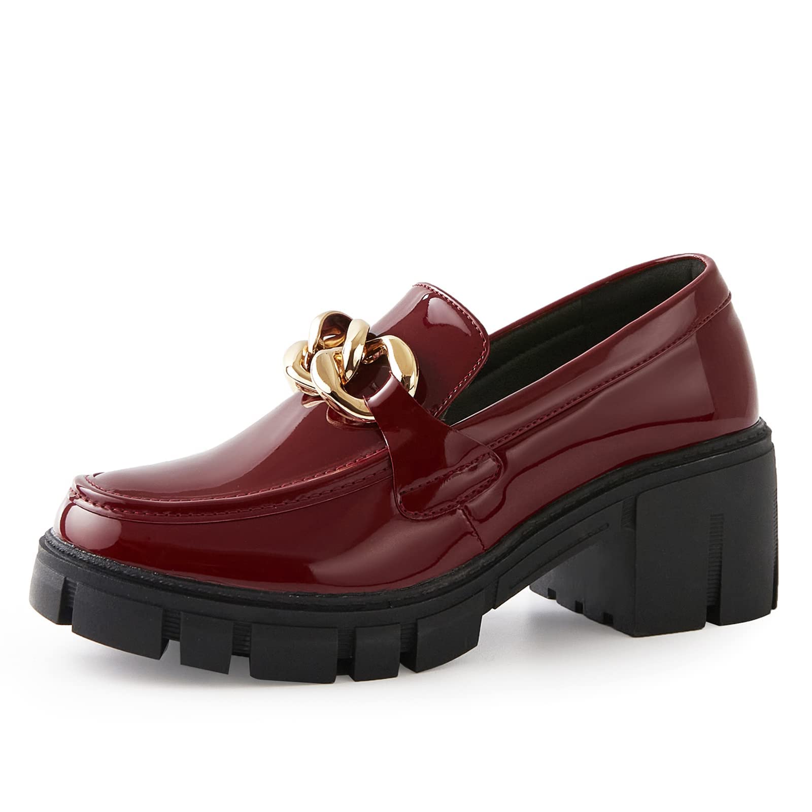 TINSTREE Platform Loafers for Women with Chain Comfort Chunky Heel Slip On Round Toe Business Work Shoes