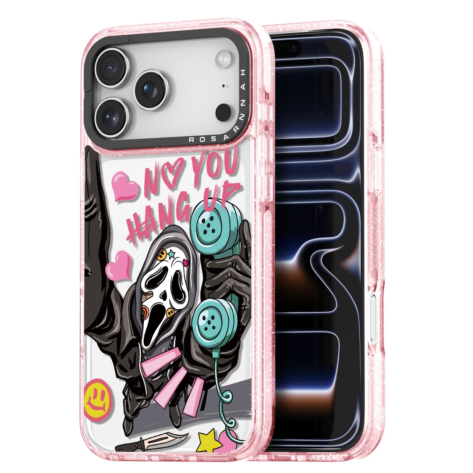 Rosarnnah for iPhone 14 Pro Case Cute - Durable Shockproof 6.6 ft Drop Impact Phone Case - Funny Skeleton Design (6.1") Glitter Pink: iPhone 17 Pro Basic Case Skeleton
