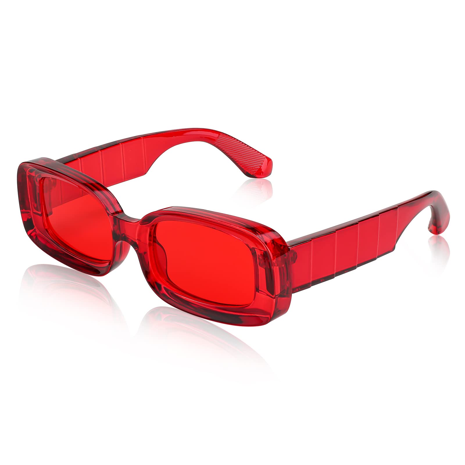 GREEN SUNGLASSES RED SUNGLASSES BLACK AND BLUE SUNGLASSES FOR MEN AND WOMEN trendy fashion sunglasses Retro Thick Rectangle Sunglasses 90s shade 90S RETRO DESIGN - With a chunky frame and stylish stepped temple design, these rectangular sunglasses are perfect for expressing your unique personal style. The lovely sunglasses with colorful frames make you stand out from the crowd immediately, suitable for people of all face shapes. A must-have sunglasses for fashionistas. HIGH QUALITY METERIALS: FEISEDY Lightweight plastic frame which has excellent strength and toughness, durable and flattering. Strong metal hinges, comfortable one-piece nose pads, smooth temple. All materials are selected to ensure a better and lasting product experience for our customers. UV400 PROTECTION - FEISEDY sunglasses can block UVA and UVB rays 100%, high-definition lenses, protect your eyes from long-term UV damage and give you a clear vision. SUITABLE FOR MOST OCCASIONS - Whether you choose to take photos, drive, shop, vacation or party, it can meet your wearing needs. It can be used as advanced fashion accessories and daily wear all year round. There is no reason not to choose it! PRODUCT DIMENSION: Lens Width: 68MM(2.67’’)| Lens Height: 44MM(1.73’’)| Frame Width: 150MM(5.9’’) | Nose Bridge: 18MM(0.7’’) | Temple Length: 140MM(5.51’’). Attention: Manual measure, there may be 1-2mm error. Please confirm the size before purchase.