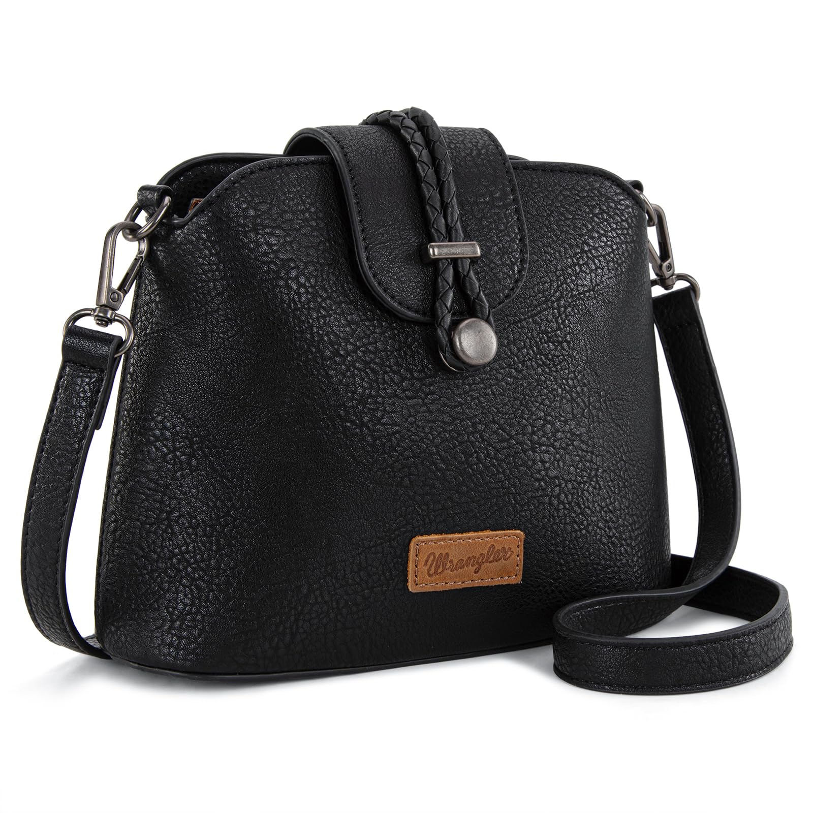 The Wrangler crossbody bag is where classic charm meets modern design, perfect for your daily adventures. Made with vegan leather, it combines tough durability with a stylish, urban look. With smartly designed dividers and pockets, your essentials like keys, wallet, and phone are always within easy reach—no more digging around. Wrangler cross body bag for women is crafted from top-quality vegan leather, offering both style and durability. The sturdy design ensures this handbag withstands daily wear, making it a reliable choice for any occasion Compact and Portable: Measuring 9.4" X 3.5" X 8.3"(Detachable strap 21.5"-25.5") , this small crossbody bag is lightweight and easy to carry, making it the ideal handbag for women on the go. Its convenient size ensures you can carry it effortlessly wherever your day takes you This shoulder bag features a thoughtfully designed interior with one main zipper compartment, a front zipper pocket, and a back zipper pocket The adjustable shoulder strap ranges from 14.5 to 26.5 inches, allowing you to customize the fit to your preference. Whether you wear it as a shoulder bag or a crossbody bag, it adapts perfectly to your needs Elevate your style with our Wrangler small crossbody bag, a perfect blend of fashion and functionality