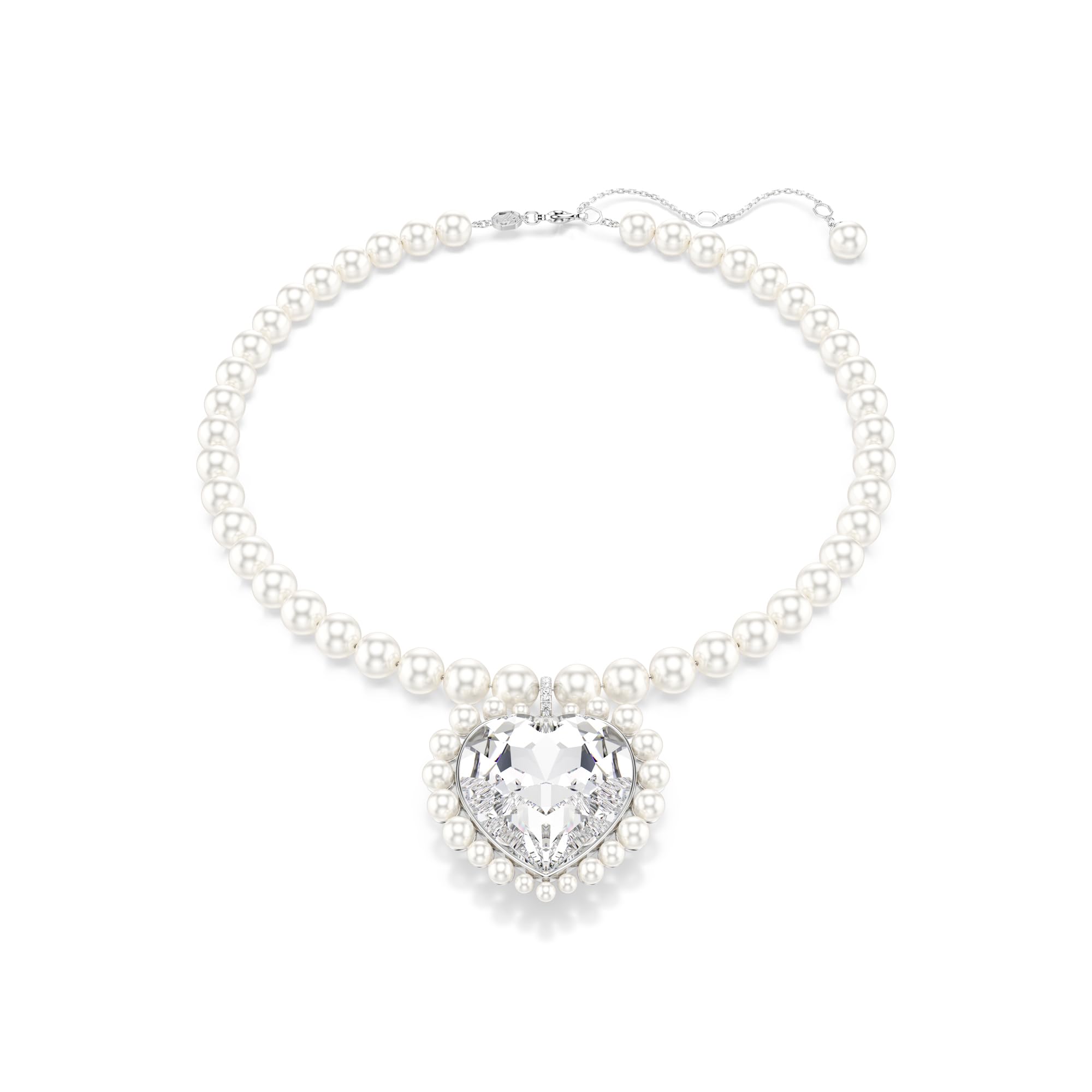 Swarovski Pendants & Necklaces Be your boldest self in our selection of crystal necklaces, crystal pendants, and chokers that showcase over 125 years of crystal mastery. Explore our dazzling array of pendants and necklaces for men and women and enter the Swarovski universe. Discover an array of gold-tone, rose gold-tone, and silver-tone designs, and lead the way with layered looks that celebrate light and color. Cleaning & Care Instructions: Keep your products stored in a safe space to avoid damage. We recommend polishing frequently with a lint-free cloth and always putting your jewelry on last. Keep away from liquids and sprays such as perfume to ensure that your jewelry maintains its brilliance. Length (minimum - maximum): 14 7/8 - 17 3/4 inch; Motif size: 1 3/4 x 1 5/8 inch Infused with Swarovski’s finest savoir-faire, this ultra glamorous necklace celebrates luxury as well as light The rhodium plated design uses Swarovski Crystal Pearls to maximum effect, placing them around the necklace itself, and also in different sizes around the central heart-shaped crystal A beautifully crafted piece of jewelry for yourself, or a joyful gift of love for someone you adore