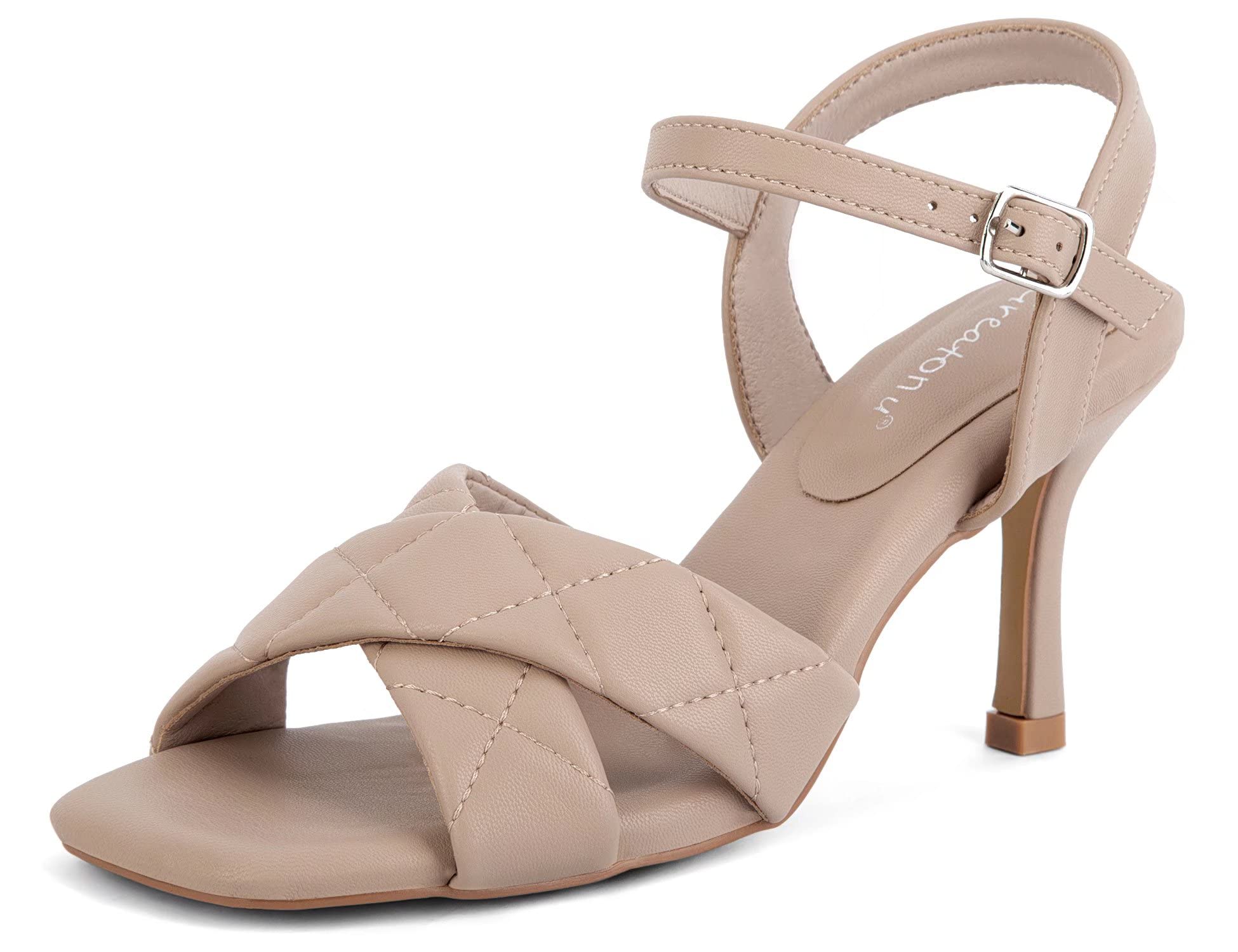 Greatonu Women's Square Toe heels Open Toe Slip-on Sandals Heeled Mules