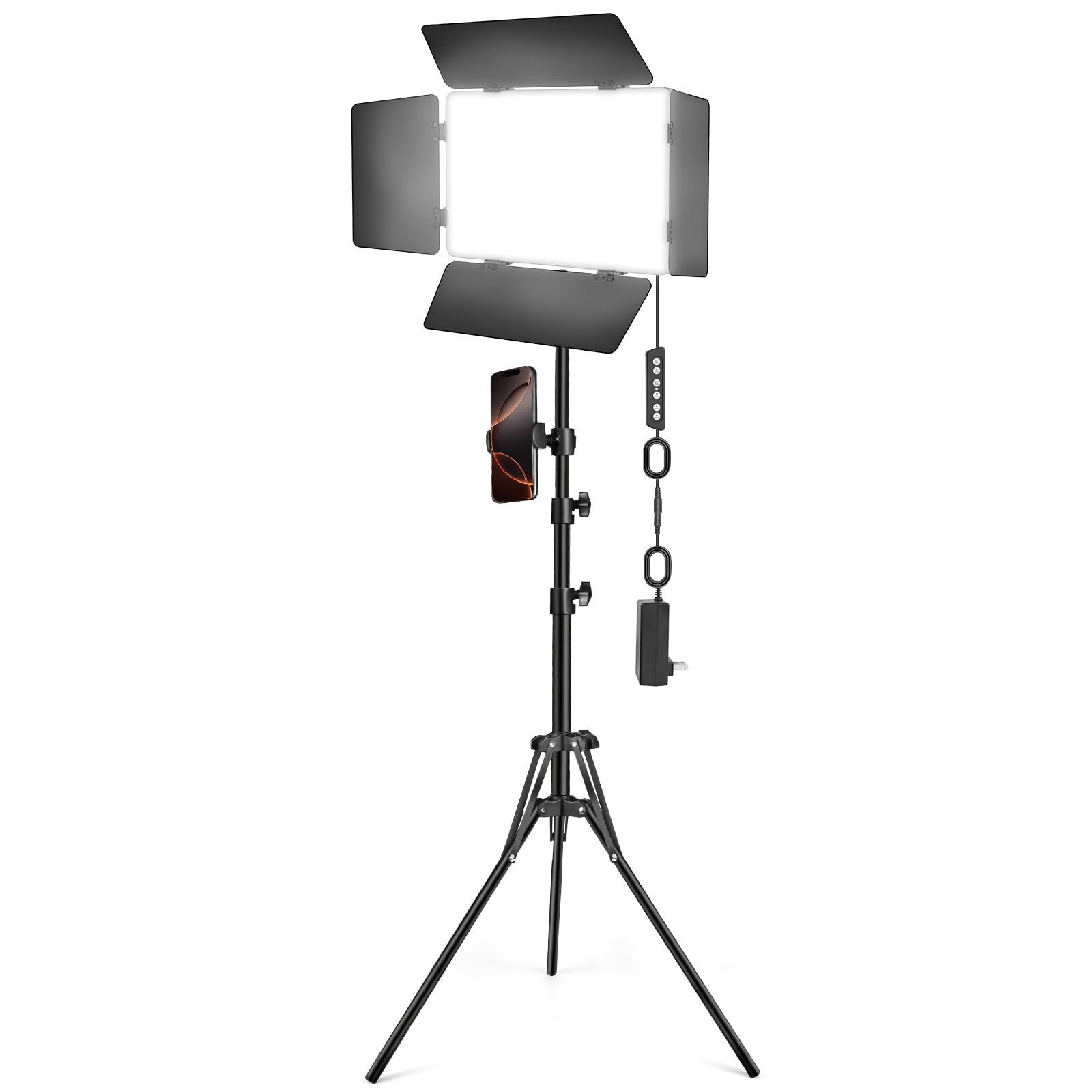 Specification: Led Beads: 352 Pieces Voltage: Dc 12V 3A Power: 30W Cri: ≥98+ Tlci: ≥98+ Color Temperature: 2500K - 8500K Illuminance: 3000Lux at 0.5M Package Content: 2 X Led Panel Light, 2 X Tripod Stand, 2 X DC Adapter, 2 X Ball Head, 2 X Carry Bag, 1 X User Manual 【30W Powerful & Versatile Lighting Kit】 Icceue Video Light Kit features 2pack 30W powerful lights panel that provide flicker free illumination, 2500K~8500K color temperature, a 10~100% dimming range.The heat is quickly dissipated through the holes on the back of the light board. This photography lighting kit is ideal for vlogging, portraits, studio photoshoots, podcast video recording, weddings, product photography, video gaming, game live streaming, filming, videography, and Zoom calls 【Customizable Settings】 With ultra high color rendering index (CRI) over 98, 3000Lux at 0.5M, ensures natural and vivid color reproduction in all your shots. 10 level brightness and 10 color temperature lighting mode to enrich your shooting environment, ideal as a key light or fill light for for creations by YouTube/TikTok or other social media content creators, influencers, live streamers, etc 【Detachable Barndoors & Sturdy Tripod Stand 】 The four leaf barndoors help modify the beam spread. The aluminum alloy light tripod stands are solid and offer a height range from 24'' to 63'' (60cm to 160cm). The cable length 9.8’. Light weight and durable design allow you to carry around conveniently and move easily 【Package & Customer Support】Our package includes: 2 x Studio Light Panels with cables, 2 x Adjustable Tripod Stands (one for each panel), 2 x Phone Mount Clip, 2 x Ball Heads, 2 x AC/DC Adapters, 1 x Storage Bag, 1 x User Manual. If you encounter any issues during use or notice any defects, our dedicated support team is always ready to assist 【Wide Application】The Phone Mount Clip is extendable from 2.65 to 3.8 inches, making it compatible with all cellphones. It is essential for photo studios, video recording, photography, low-angle close-up shots, portraits, live streaming, vlogging, and YouTube podcasts
