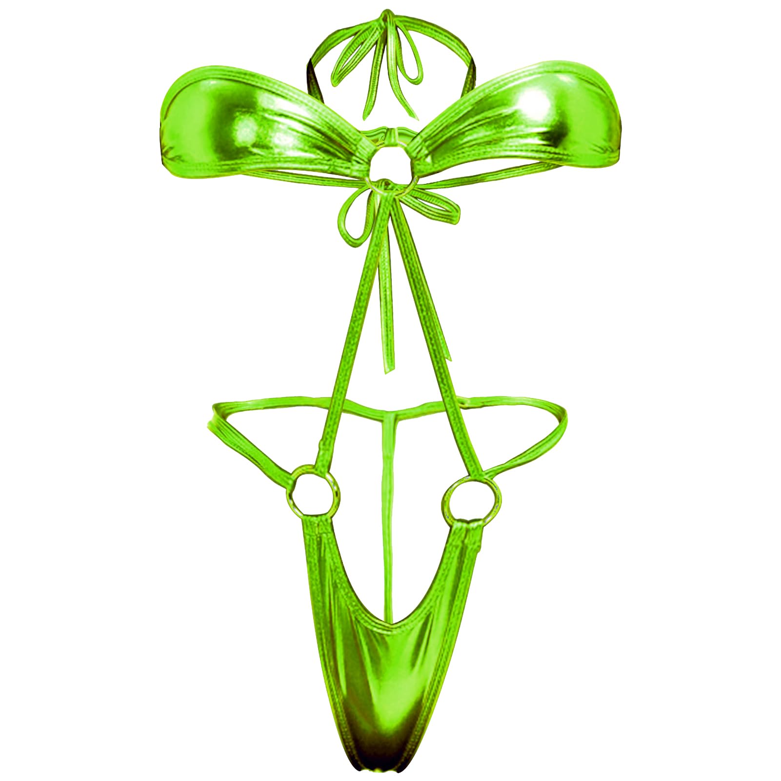 Yevin Sexy Latex Wet Look Lingerie for Women One Piece Exoctic Dancer Wear: One Size Fluorescent Green