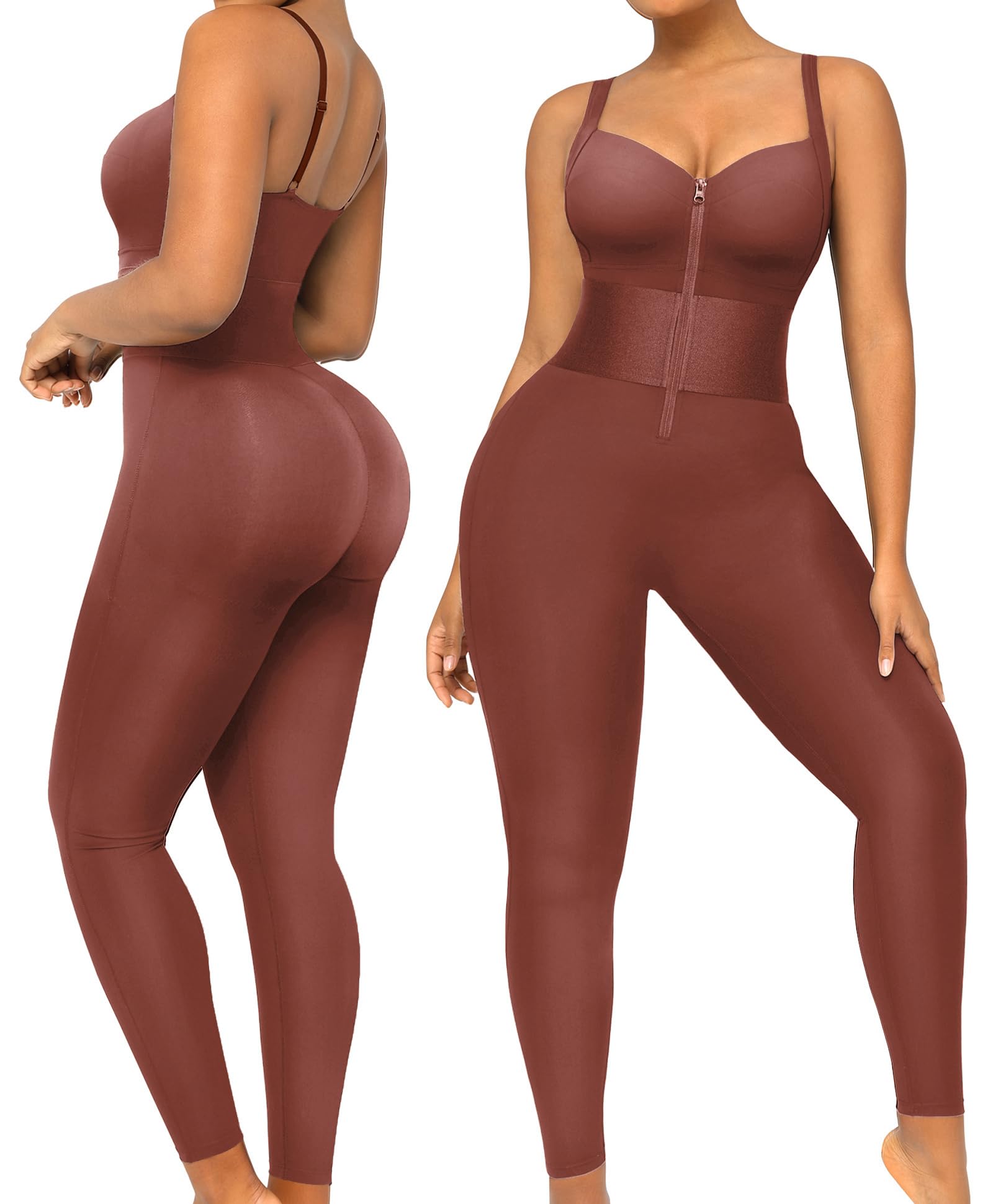 SHAPELLX Jumpsuits for Women Tummy Control One Piece Outfit Yoga Athletic Rompers Sleeveless Bodycon Shapewear: Brown XX-Large