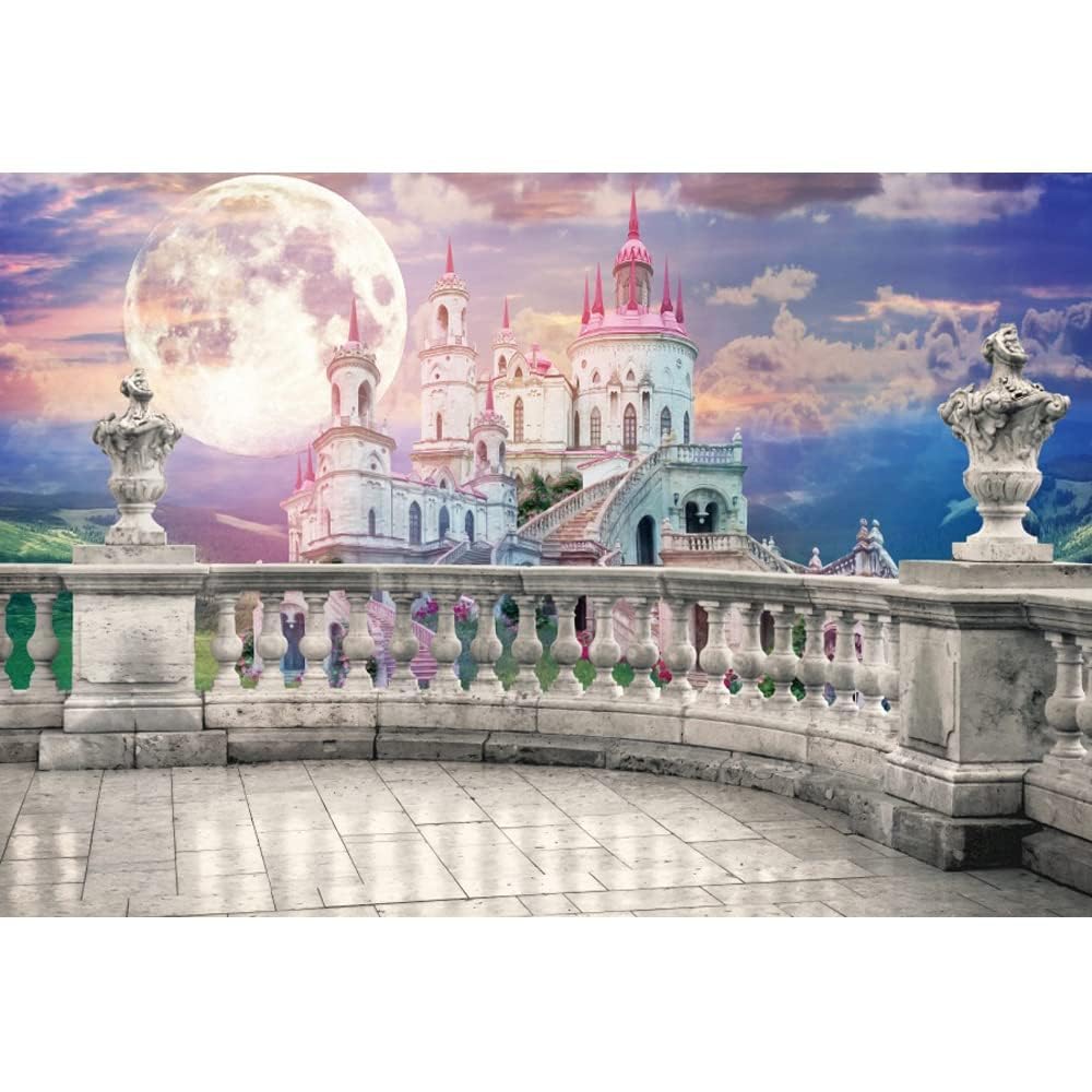 Renaiss Dreamy Castle Backdrop Fabric 7x5ft Fairy Tale Sky Photography Background Medieval Balcony Photo Backdrop for Princess Birthday Baby Shower Decor Photo Booth Prop: 6Wx4H FT Purple