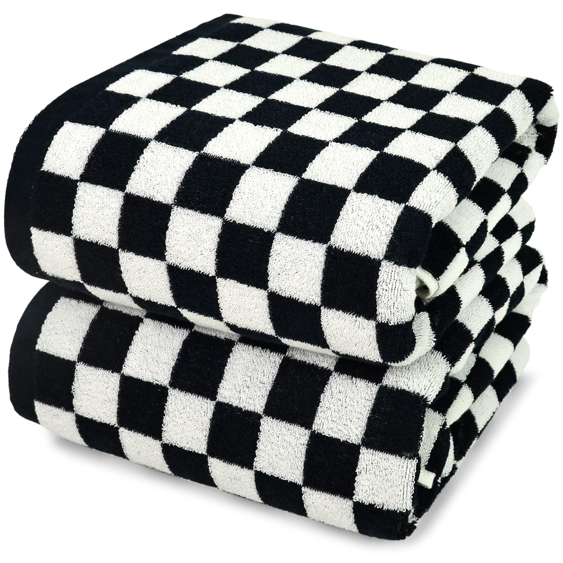 Super Soft, Highly Absorbent, Quick Dry & Everyday Essentials Crafted from cotton, these luxury bath towels offer softness, absorbency, and quick drying. Not too thick, not too thin, bath towels set perfect for wrapping up after a shower, lounging at the pool, drying off at the beach, or tossing in your travel bag for weekend getaways. Classic Checkered Style That Elevates Your Space Bring a stylish upgrade to your space with these black and white towels. Whether in a primary bathroom, pool, guest room, or college dorm, cute bath towels instantly catch the eye and elevate your vibe. Extra Large Bath Towels for Men, Women, Girls, Boys Why You'll Love the Cotton Towels: Midweight: 520 GSM plush, breathable fibers of thick bath towels that wrap you in warmth without the bulk. Quick-Drying & Fresh: Light, fluffy, and compact enough for travel, gym bags, and holiday party Towels Large: Sized at 27.5” x 55”, body towels give perfect coverage for yourself, mom, grandma, dad, daughters, sons, wife, husband, or friends. Ideal Gifts: A great gift for Mother’s Day, Father’s Day, summer party, housewarmings, or wedding presents—this versatile 2-pack bathroom towel is a practical yet fun addition to any home. Soft, Absorbent & Quick Dry: At 520GSM, cotton bath towels offer the perfect balance of plush comfort and lightweight breathability. Thicker than standard towels yet fast drying, ideal for daily shower, busy mornings, or spa-like relaxation Checkered Towels for Bathroom - Black and white checkered bath towels add bold personality to your bathroom, dorm, and guest room! Perfect for those love modern, farmhouse, trendy, preppy, or retro aesthetics Size: At 27.5 x 55 inches, large towels give you full-body coverage without feeling bulky. Whether you’re wrapped after a bath, heading to the gym, beach, or pool, even a pleasant trip, body towels keep up with your routine Durable: Crafted with premium cotton and reactive dyeing technology, black towels feature reinforced stitching and neatly hemmed edges to resist fading and unraveling. So quick dry bath towels stay strong and fresh wash after wash Bath Towels Set of 2: Versatile 2-pack shower towels, perfect for his & hers towel set, indoors, outdoors, Mothers Day gifts, or Fathers Day gifts. A must-have for couples, families, or those who loves stylish, cute, and soft towels
