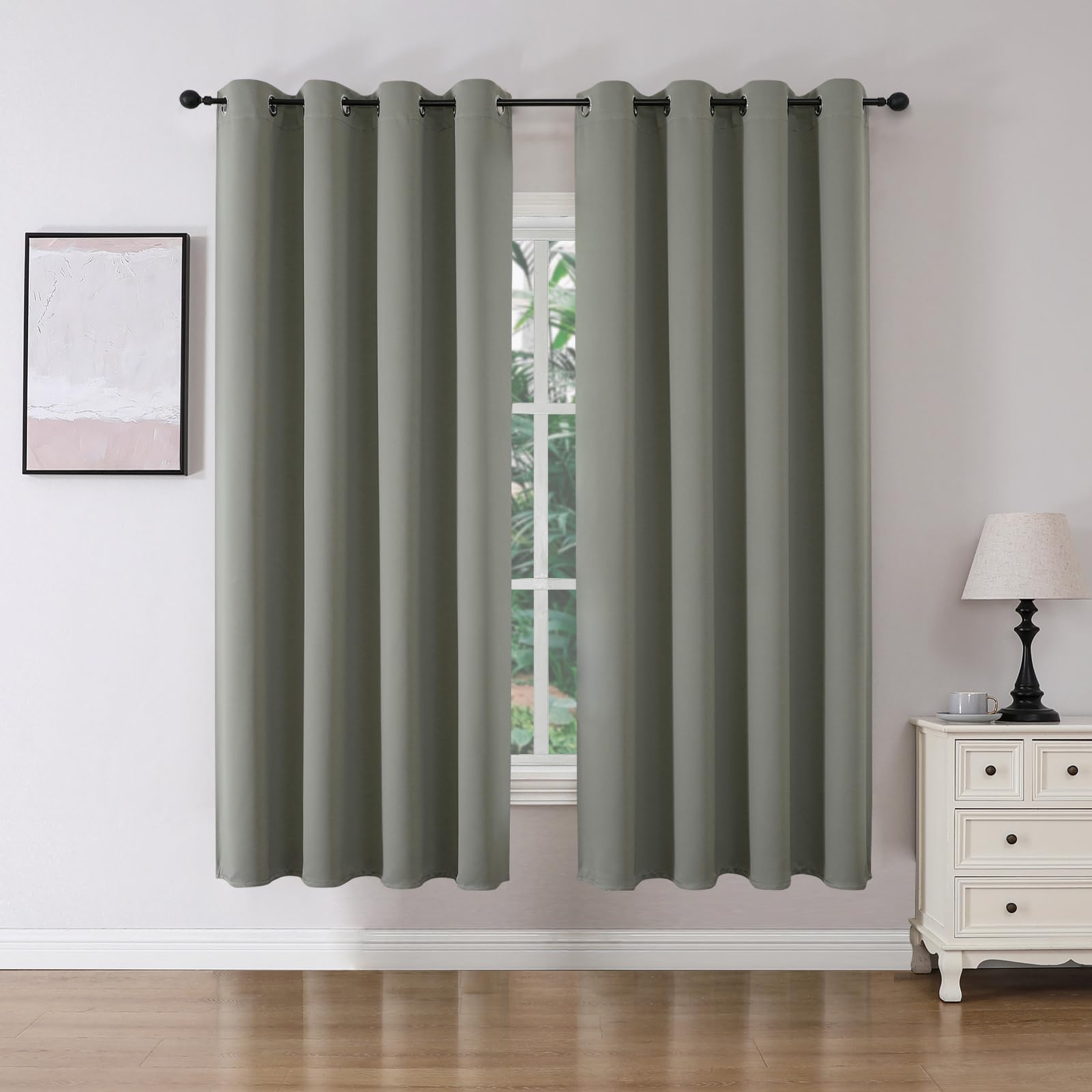 Joydeco Blackout Curtains 63 Inch Length 2 Panels Set, Thermal Insulated Long Curtains& Drapes 2 Burg, Room Darkening Grommet Drapes for Bedroom Living Room Window (Black, W52 x L63 Inch): Sage Green 52"W x 72"L (Pack of 2)