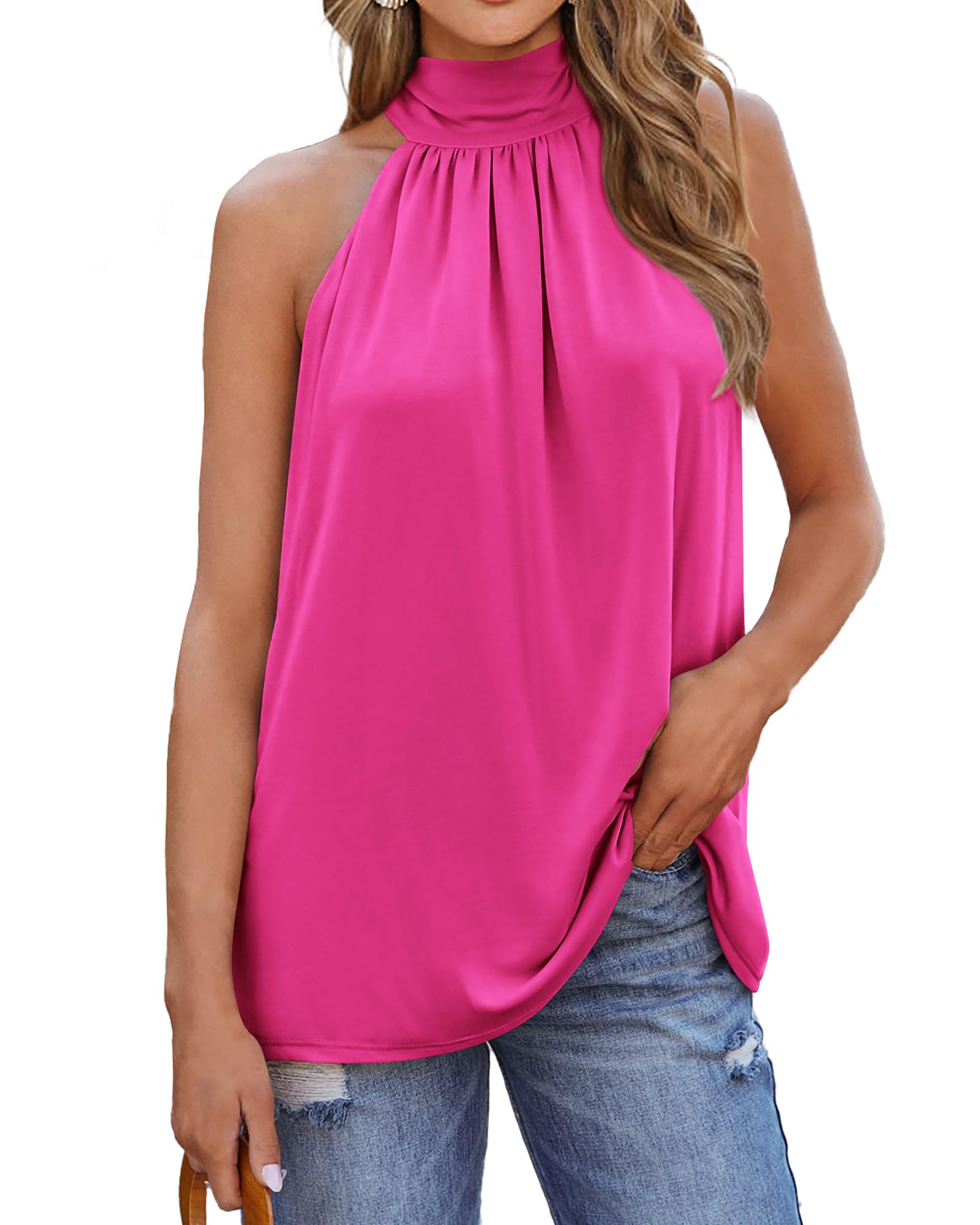 BTFBM 2024 Women Summer Sleeveless Tie Mock Neck Halter Tops Casual Bow Loose Tank Top Lightweight Dressy Blouse Shirts
