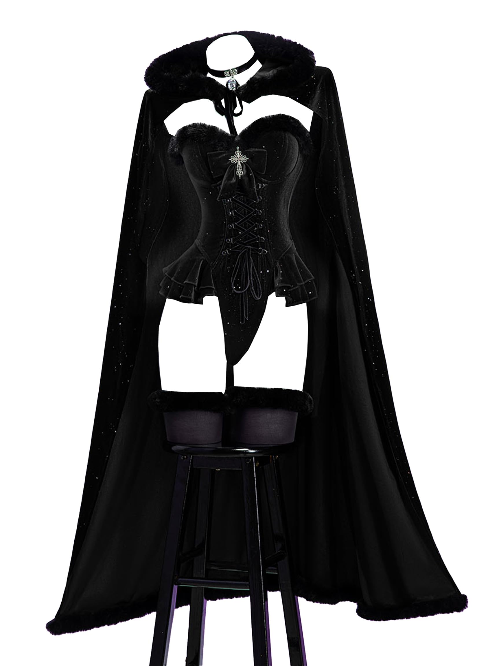 MEOWCOS Women's Bodysuit Queen Cosplay Costume Halloween Christmas Bodysuit Cape Set with Crown Cloak Gloves Socks