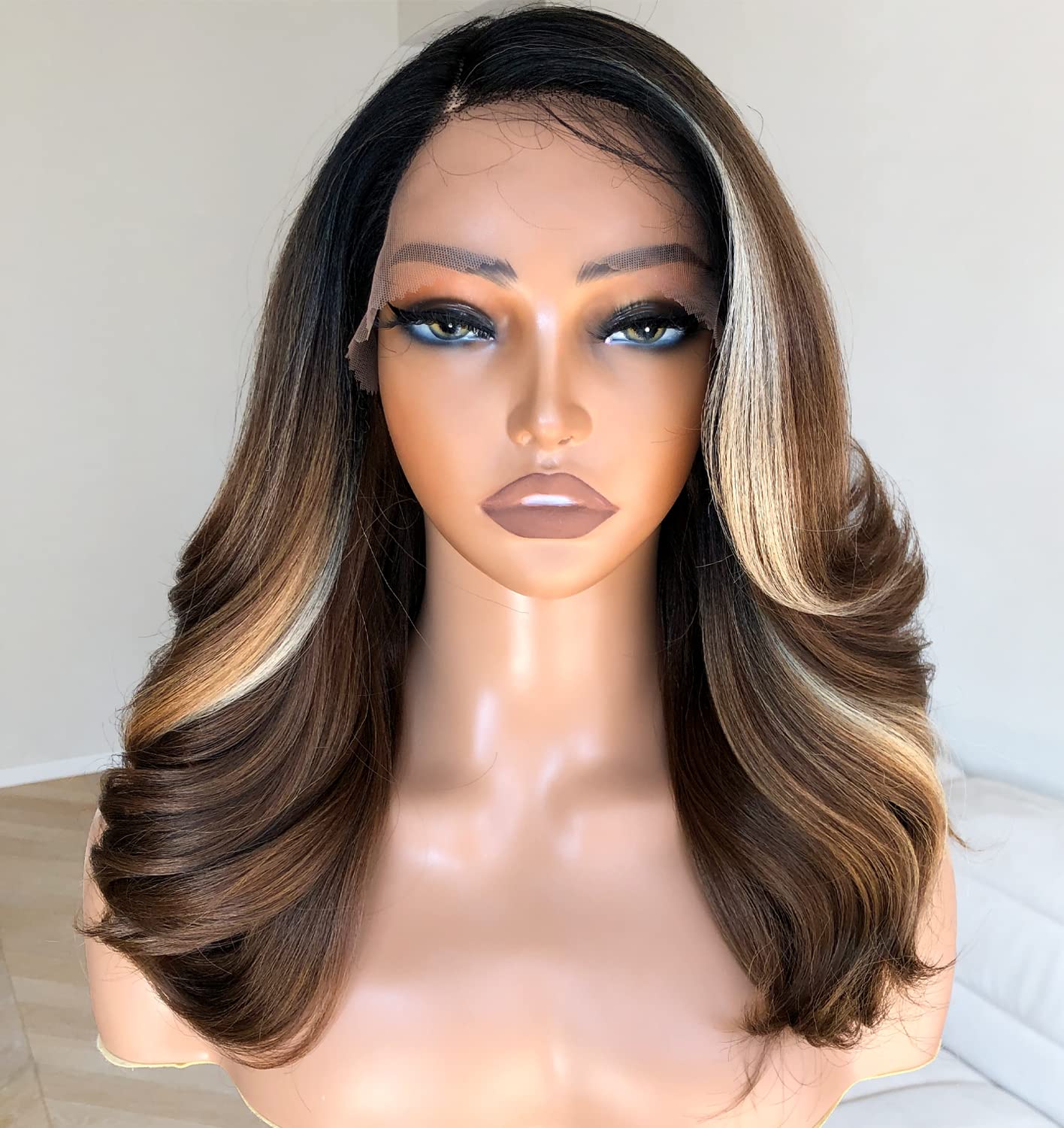 BlackSwern Skunk Strip Wigs, Blonde Skunk Strip Body Wave Lace Front Wigs Pre Plucked, Glueless Lace Wigs for Black Women: 14 Inch Highlights