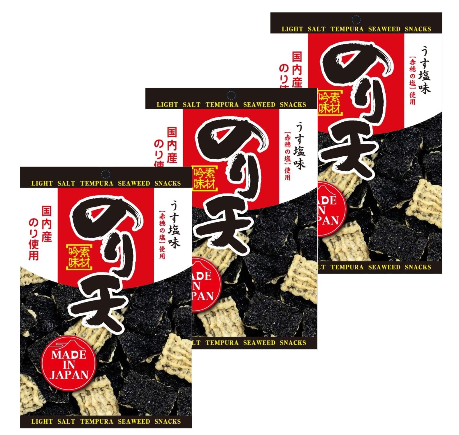Japanese Nori Ten Seaweed Tempura Snack – 3-Flavor Variety Pack (Soy Sauce, Wasabi, Lightly Salted) | Crispy & Savory Seaweed Snack Made in Japan | Authentic Japanese Snack Food Gift Set | Yummy-Yamaguchi: Lightly Salted