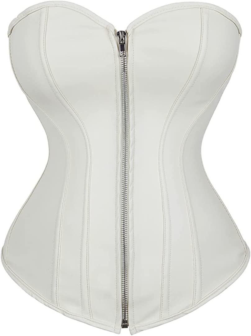 Corsets for Women Faux Leather Corset Top Steampunk Corsets Zipper Bustier Pirate Costume: Small White