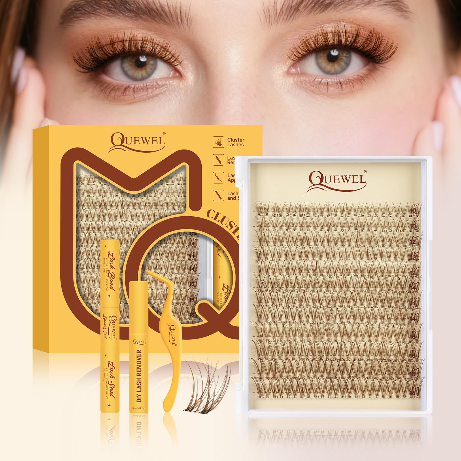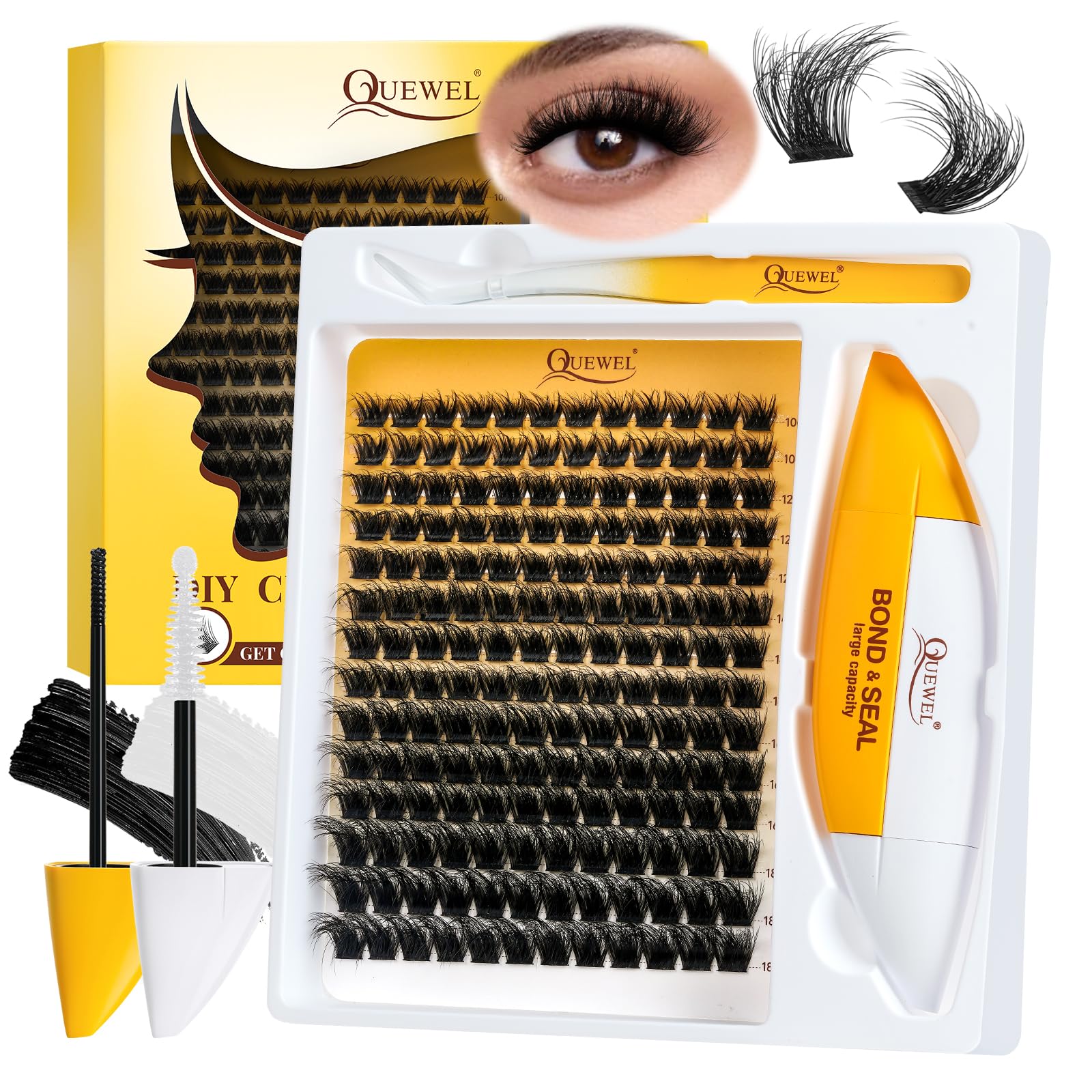 QUEWEL focuses on providing you with high-quality lash clusters Kit and serving your beauty. We have a nwe fairy lash clusters kit, DIY your cluster eyelash extensions at home.0.05MM Ultra-Thin Invisible Band: The manga lash clusters ultra-thin invisible band design, can blend better with your natural eyelashes, seamlessly blending in, create natural effect.manga lash clusters kit: Lash clusters kit includes 144pcs 10-18mm mixed length lashes clusters, 1 lashes bond and seal, 1 eyelashes tweezers, and 1 lash clusters remover. The middle cluster of each fairy lashes is longer and thicker than the lashes on both sides. You are free to combine different styles, such as cat eye, doll eye, etc, creating charming eye makeup at home. This eyelash extension kit comes with all the essentials you need for easy application, even for beginners. 100% Handmade fairy lash clusters kit: QUEWEL DIY cluster eyelash extensions kit uses imported High-Quality synthetic fibers to make fairy lash clusters lighter and softer than regular natural lash clusters fibers. Wear comfortably for a whole day. The thin eyelashes clusters band is well-aligned with your eye shape and looks very natural and fluffy. fairy lash clusters kit Long-Time Retention: This DIY lash extension kit has a 2 in 1 lash bond and seal, one side is a fairy lash clusters bond and the other side is a individual lashes seal. strong hold ensures your natural lash clusters stay in place all day, giving you confidence from morning till night. Mild formula that won't harm your eyes. You can trust this lash cluster kit.Effective Lash Remover and Tweezers: In this lashes clusters kit, false eyelashes remover is made of a mild formula, safe and no irritation suitable for sensitive eyes. Ultra clear cleaning power does not worry about eyelashes glue residue. The tweezers are made with special technology and added a non-stick coating. Manga Look, 0.05MM Ultra-Thin Invisible Band Design: Fashionable manga lash clusters with 0.05mm ultra-thin invisible root lash bands, easily blend with natural eyelashes to create a charming manga effect, and widen lashes 4 clusters of lashes can complete a single eye effect, effectively save time, cost-effective Manga Lash Clusters Kit: QUEWEL manga lash clusters kit includes 144pcs 10-18mm mixed length lash clusters, 1 lash bond and seal, 1 false eyelashes tweezers. The middle cluster of each fairy lash clusters is longer and thicker than the lashes on both sides. You are free to combine different styles, such as cat eye, doll eye, natural eye, etc 100% Handmade Lash Clusters: QUEWEL manga lash clusters kit uses imported high-quality synthetic fibers to make fairy lash clusters lighter and softer than regular natural lash clusters fibers. Cluster eyelash extensions kit provides ultimate comfort. natural & comfortable wear all day long Long-Time Retention: This manga lash clusters kit comes with 2 in 1 lash bond and seal and eyelash clusters are long-lasting curls. Perfect for parties, long-term use during travel, and holidays to provide you with unlimited beauty, QUEWEL lashes are a good partner for you to maintain lasting charm After Sales Service Guarantee: QUEWEL focuses on providing you with a high-quality DIY lash clusters kit and serving your beauty. If you have any questions about our fairy lash clusters kit, please feel free to contact us, and we will reply to you within 24 hours. Hope you enjoy DIY clusters eyelash extensions at home